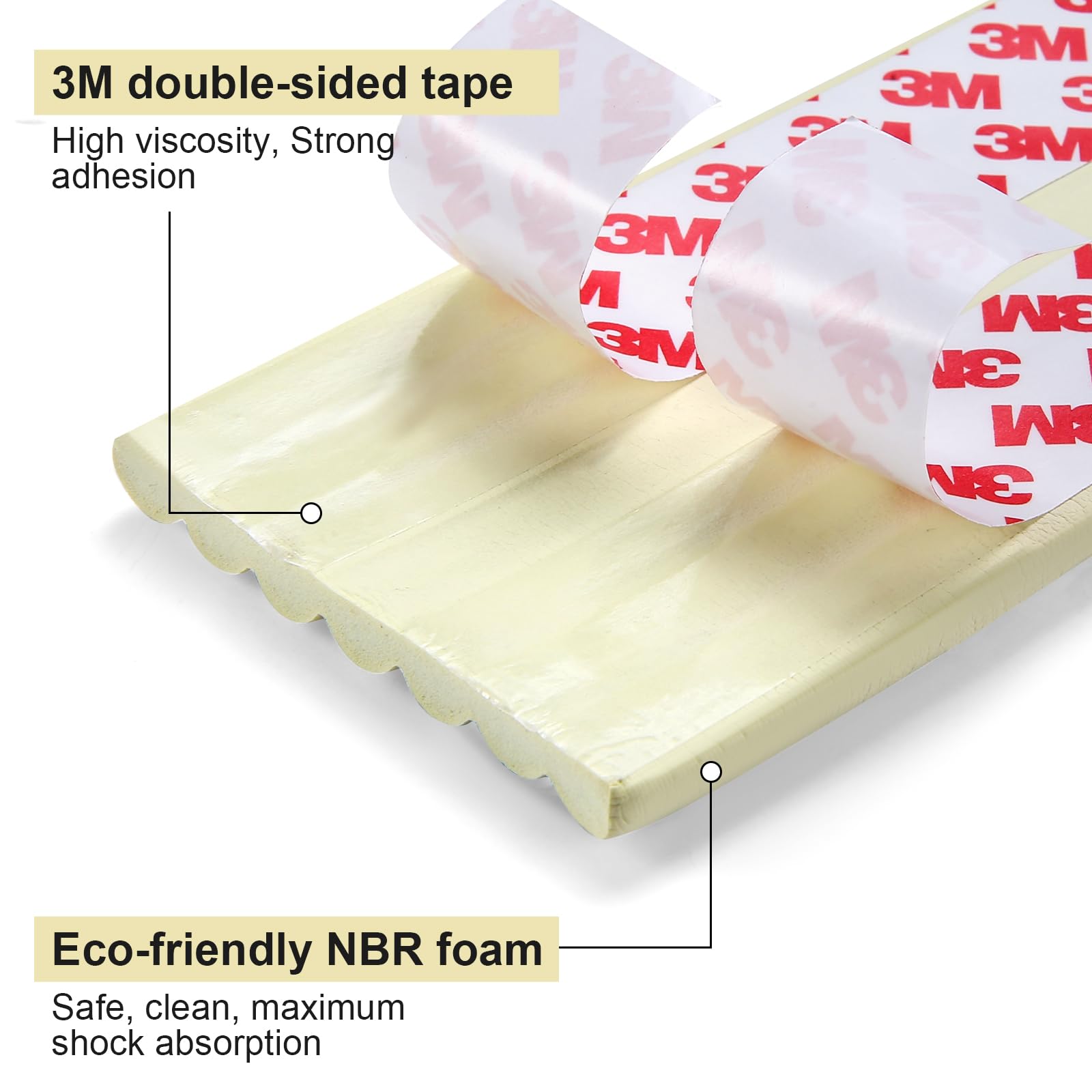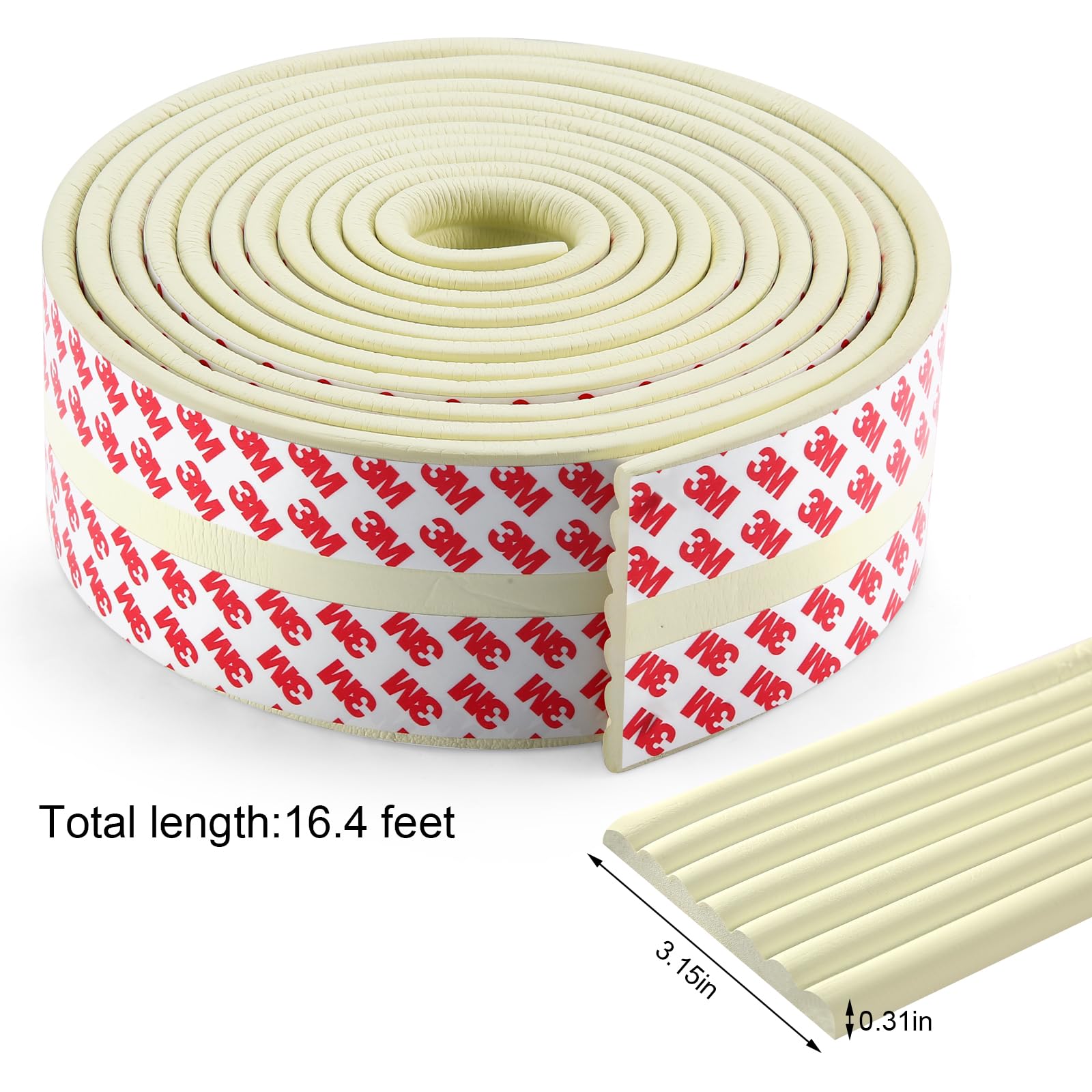 Material: Premium high density NBR foam with high quality adhesive tape. This edge protector is soft, malleable. Size: 16.4 ft* 3.14in * 0.31in.