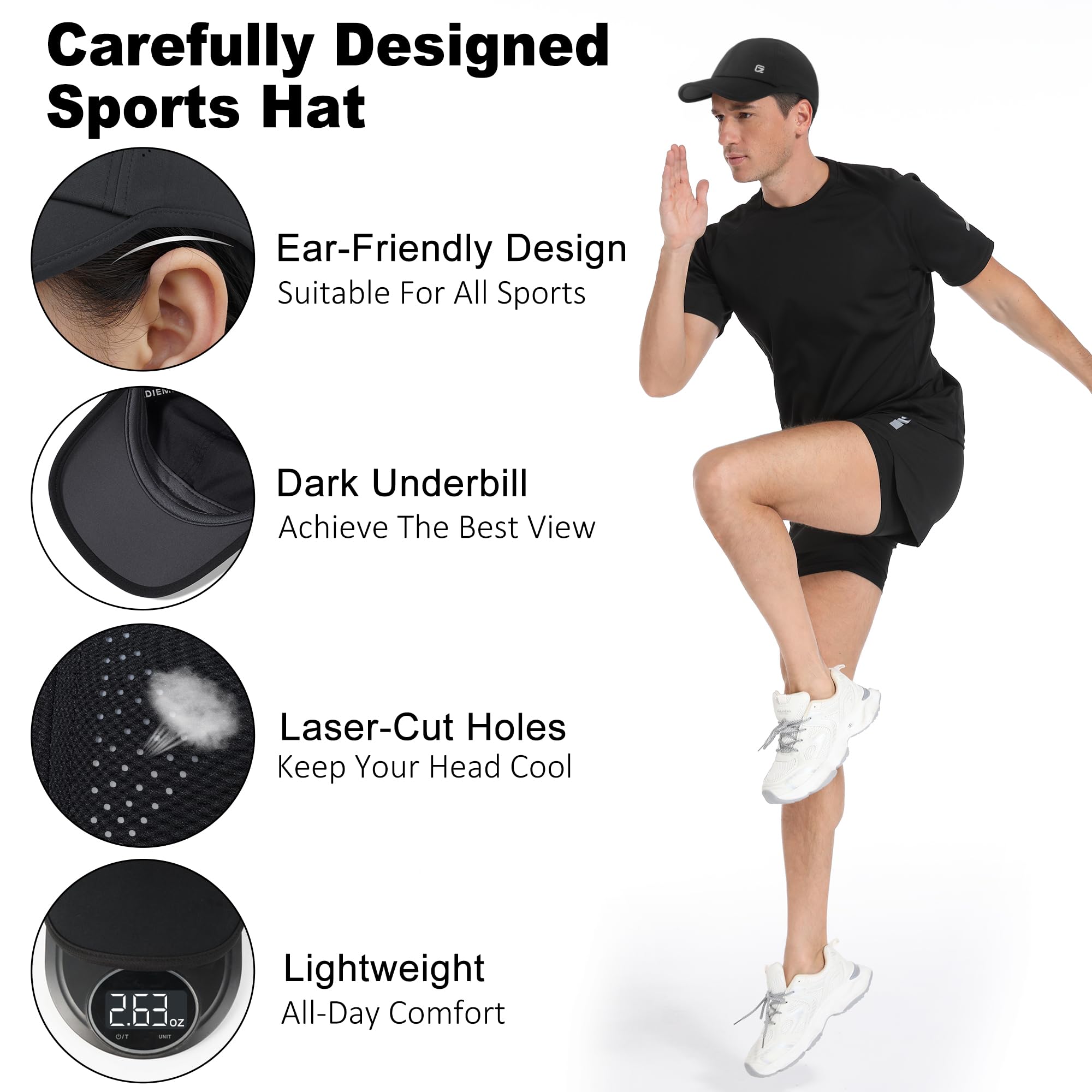 Breathable: Our running hat features breathable mesh on both sides to improve air circulation and promote sweat evaporation, keeping you cool and dry even during intense exercise
