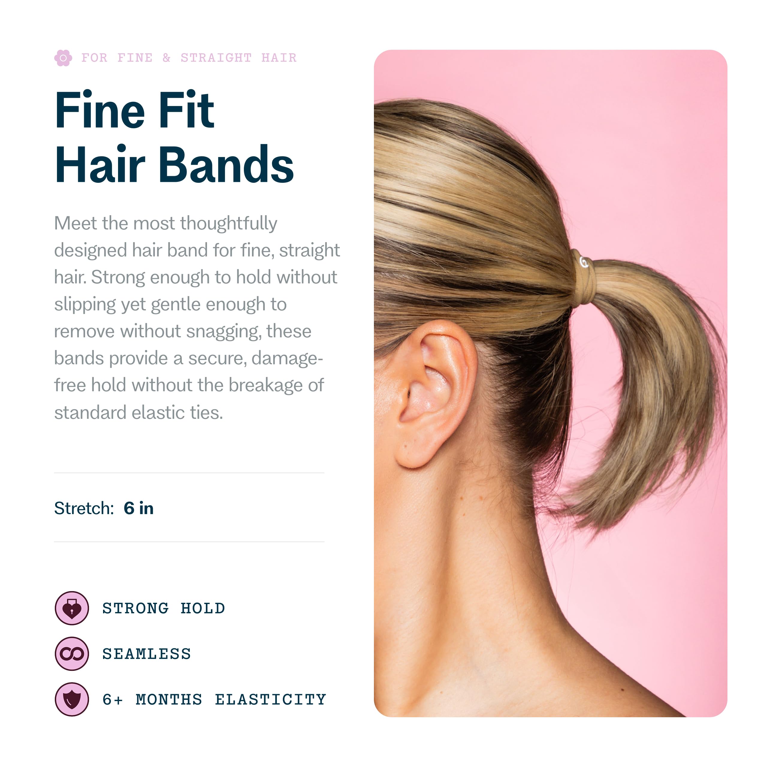Delicate Touch Hair Ties: These elastic hair bands are best for fine hair; these fine hair type ties are thoughtfully crafted with snag-free technology to help protect delicate strands during daily use