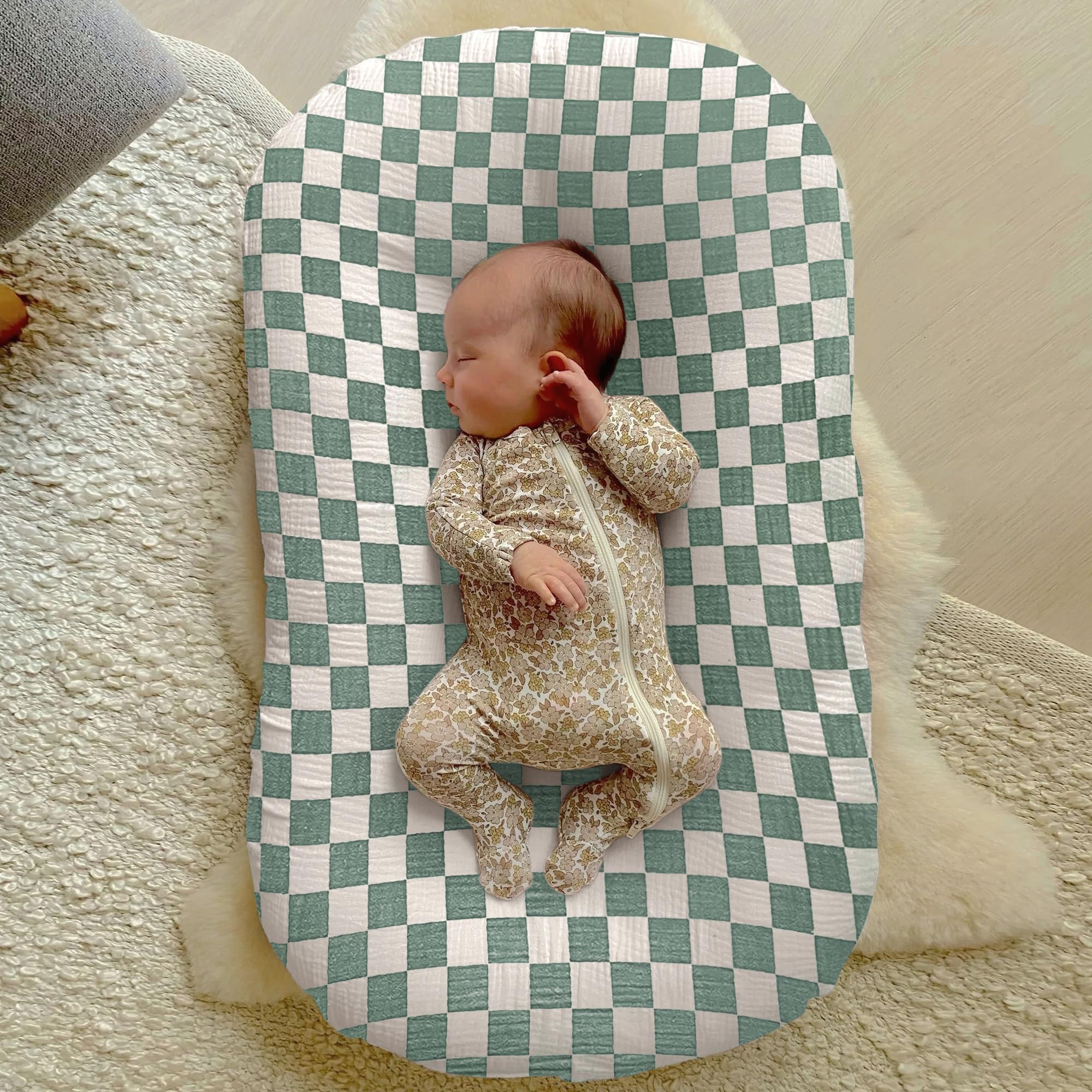 Soft and Breathable: Our baby lounger cover is made of 100% muslin cotton. Experience the soft and comfortable touch of our fabric, perfect for your baby's delicate skin. The lightweight and breathable material will ensure your little one stays cool and cozy