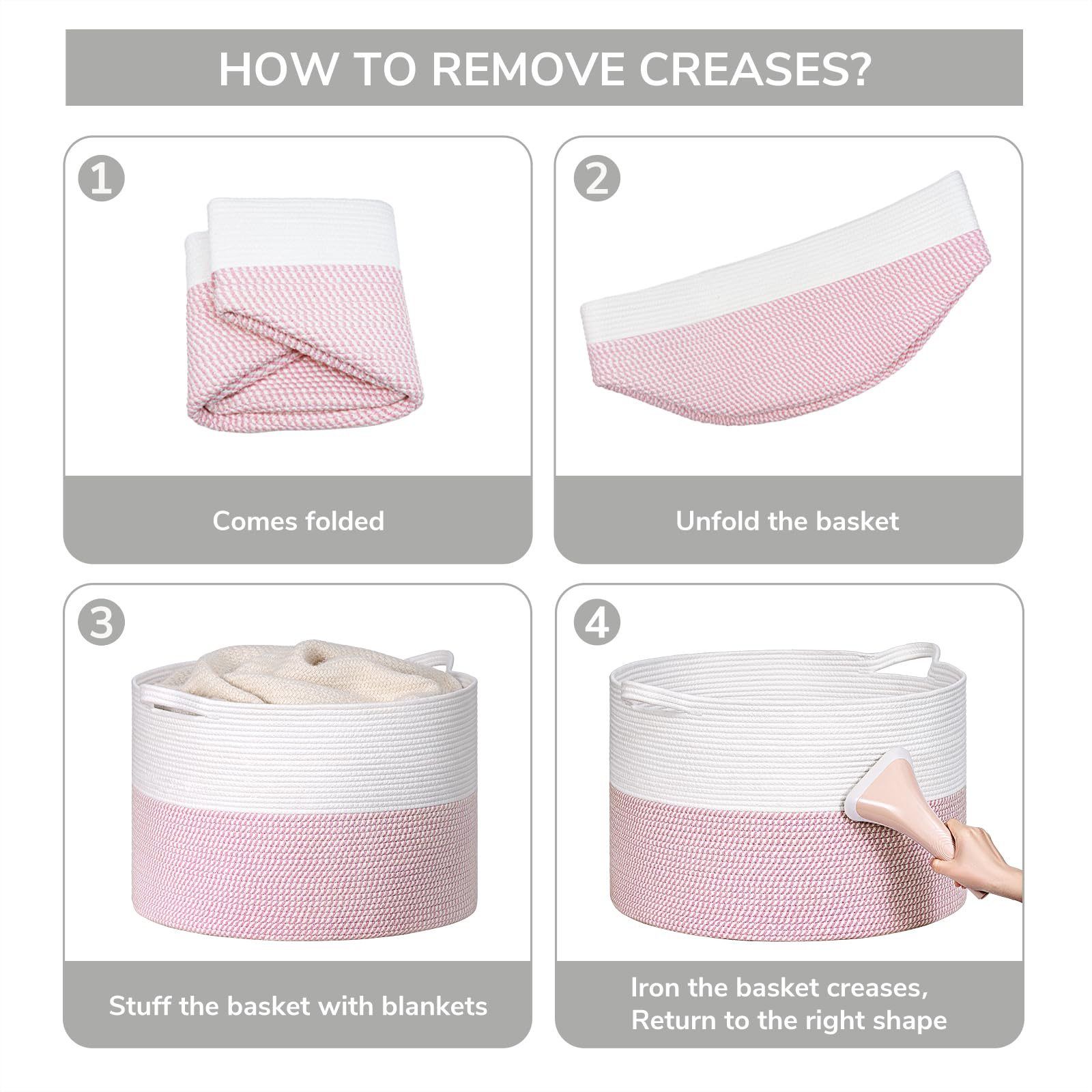 Sturdy and Soft Material: Our cotton rope basket is made of thick, sturdy fabric that is good for babies, kids, and pets to touch. It is also no chemical smells, making it perfect for storing a wide range of items