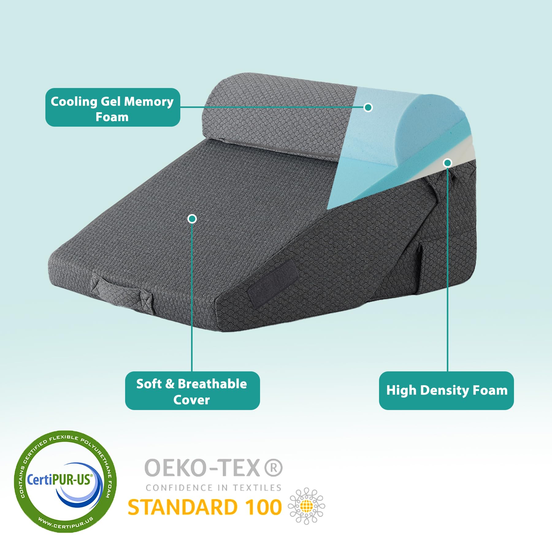 Enhanced Health Support: Designed for improved blood flow, breathing, and reduced snoring, the ergonomic wedge pillow system aid recovery post-surgery, alleviate knee, back and leg pain.