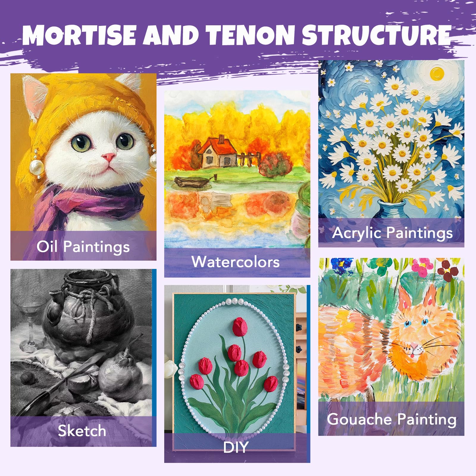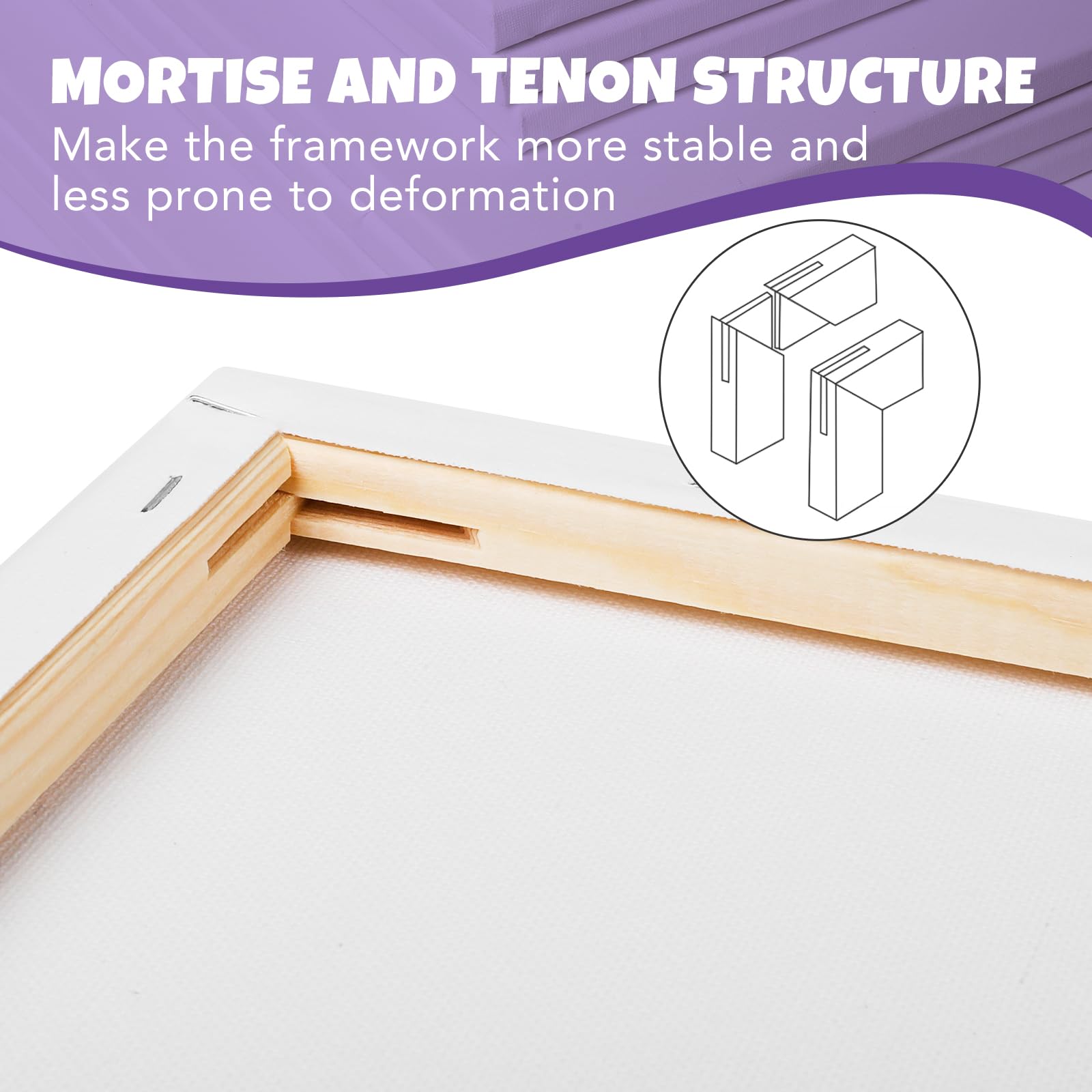 Wood Frame:The 16x20 canvas for painting is nailed firmly to the pinewood frame, extra cross bar to ensure the perfect steadiness, 5/8 inch thick frame structure,It's sturdy and doesn't deform easily. The high quality will enhance your painting experience.