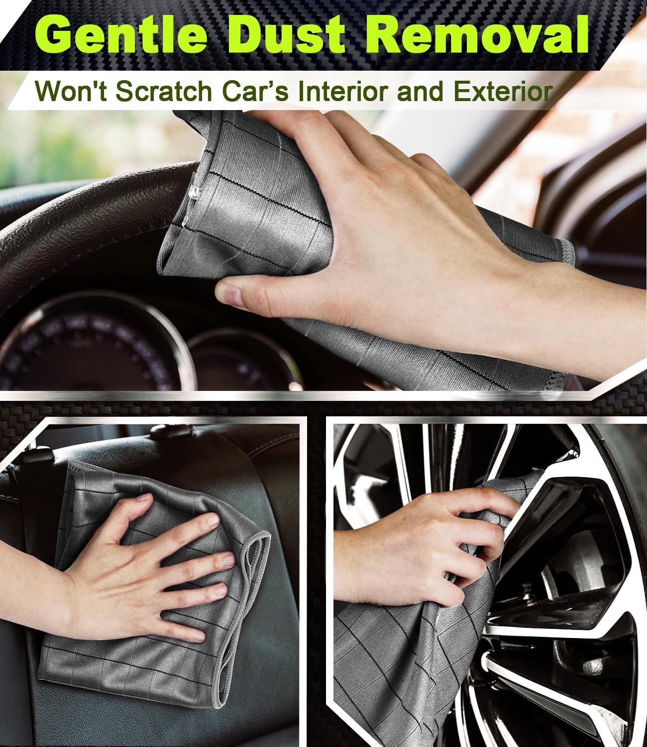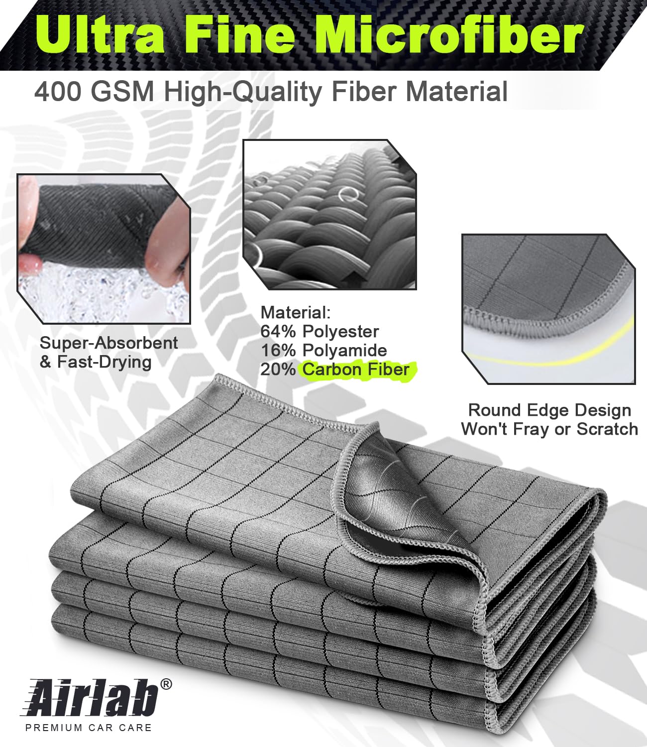 Carbon Fiber Technology: This microfiber cleaning cloth is made with carbon elements that give it powerful cleaning ability, easily tackling fingerprints and grease. It's 100 % safe on car paint, and perfect for shiny surfaces like glasses and windows