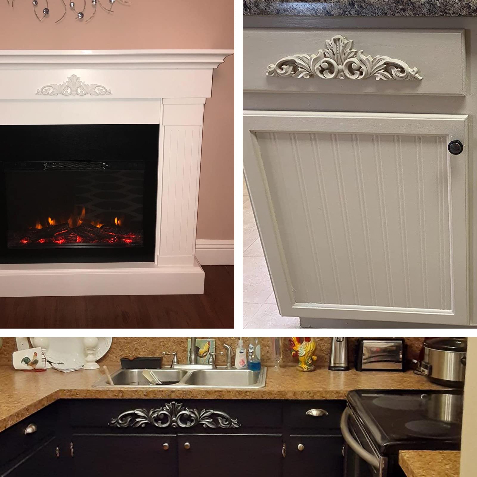 [WIDE APPLICATION] --- The carved appliques onlays are the perfect accent pieces to decorate your furniture. According to the different size and shape, you could attatch them to the wall, door, cabinet, window, desk, mirror, bed, closet, ceiling, coffee table, TV cabinet, fireplace mantels, vent hoods and Clock etc