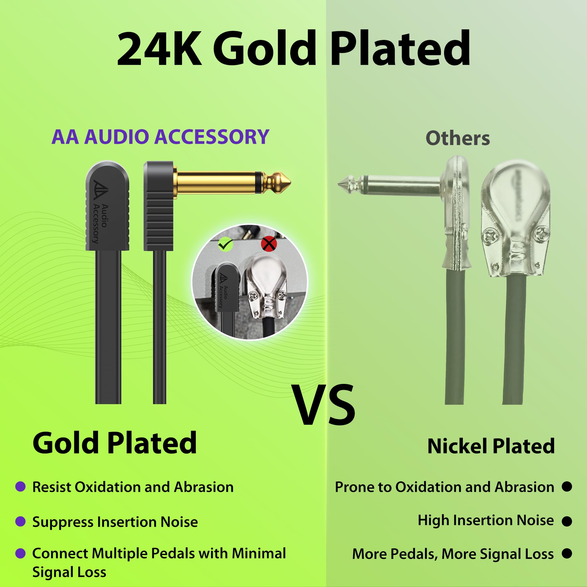 [Gold-Plated Connectors] The guitar pedal patch cables 6 inch use gold-plated 1/4 connectors that resist oxidation and suppress insertion noise. Perfect for keeping your pedalboard patch cables noise-free and reliable during everyday use.