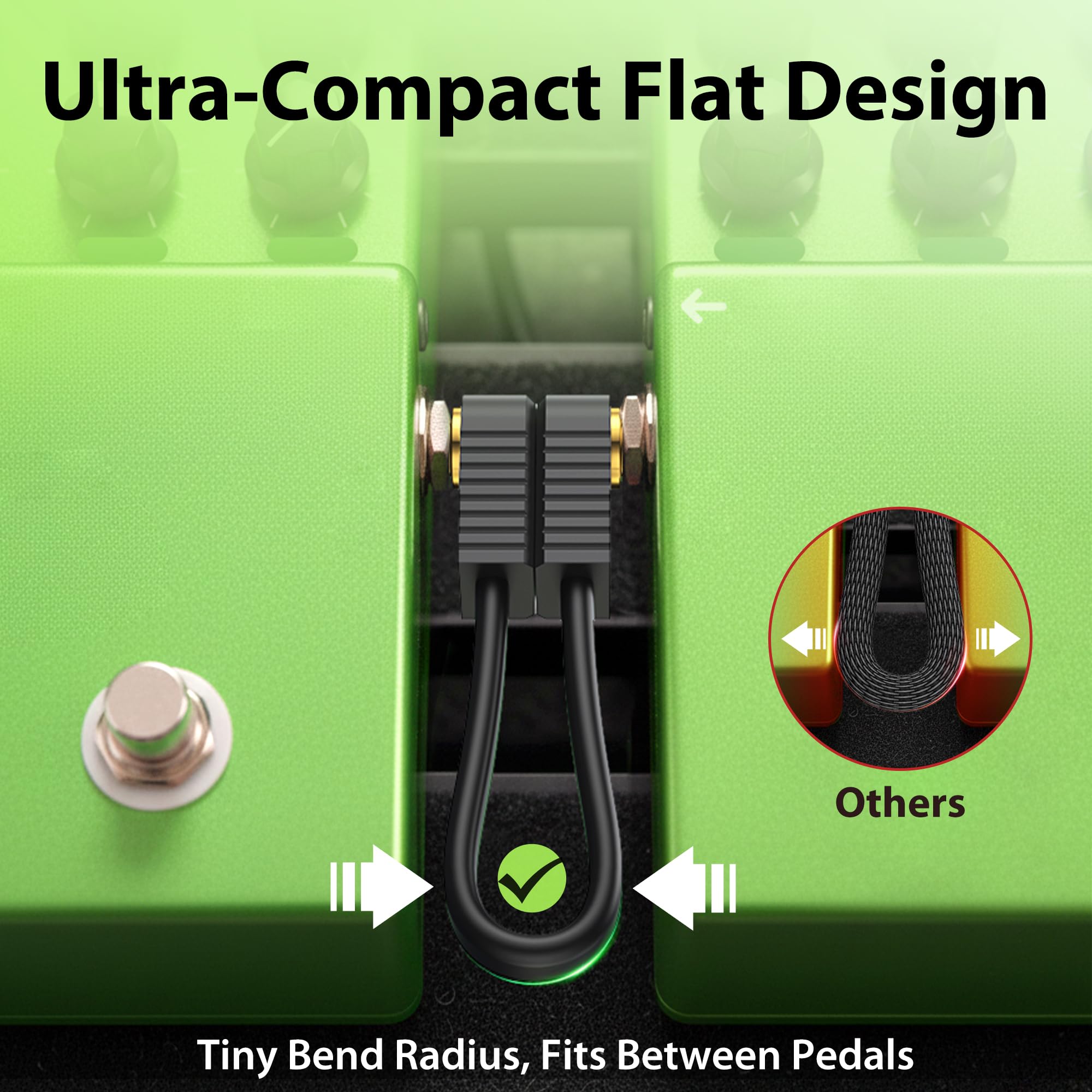 [Ultra-Compact Flat Cable] The flat patch cables have an extremely small bend radius, making them easy to route between pedals and ideal for limited pedalboard size by freeing up valuable space. A great pick for clean and efficient pedalboard wiring.