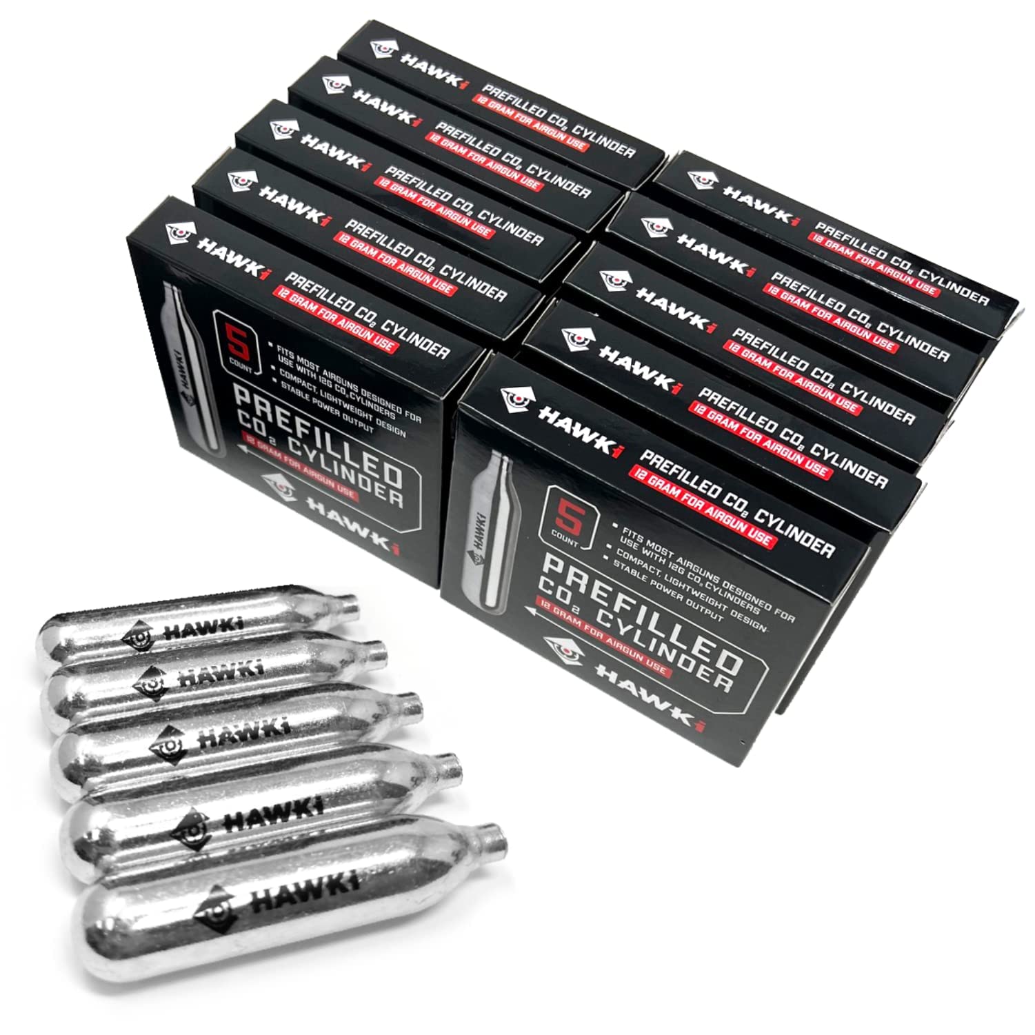 MULTI-PACK QUANTITY: Includes a 50-pack of Hawki 12 gram CO2 cartridges, the essential power source for air guns, airsoft pistols, and paintball markers.