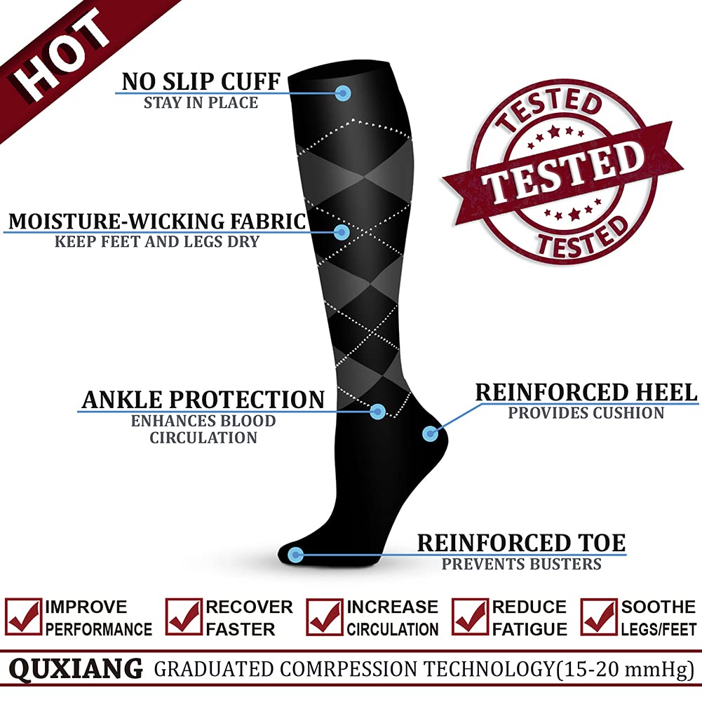 COMPRESSION BENEFITS - QUXIANG Compression socks are designed to promote blood circulation and oxygen flow preventing fatigue and helps in muscle recovery. Whether you are an athlete, sportsperson, teacher, flight crew, receptionist, office worker, pregnant, recovering patient, nurturing mother, elderly, our socks are universally suitable for all work.