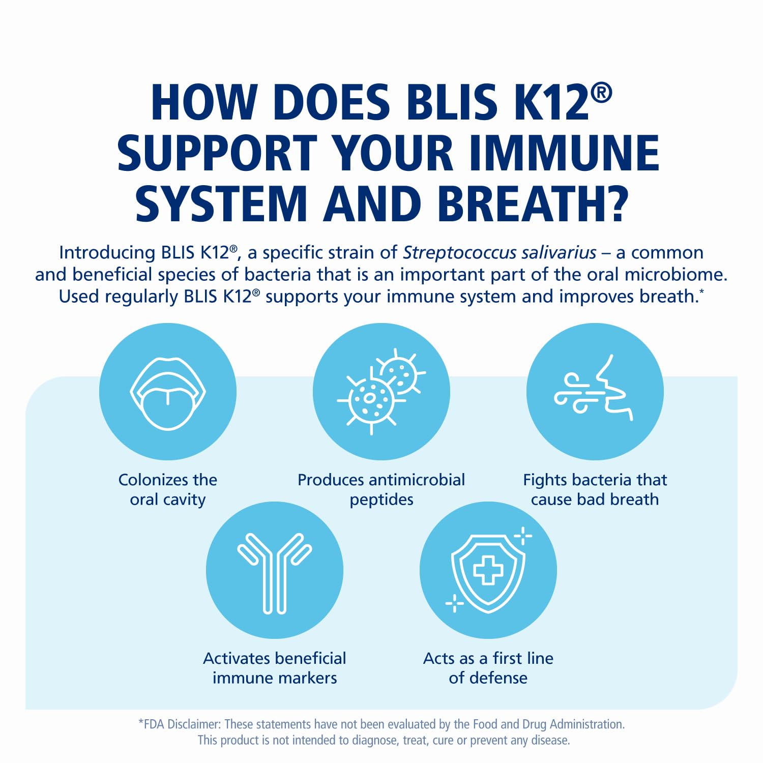 NATURAL ORAL PROBIOTIC: BLIS K12 is a naturally occurring oral probiotic found in healthy adults and children, supporting overall oral microbiome health.