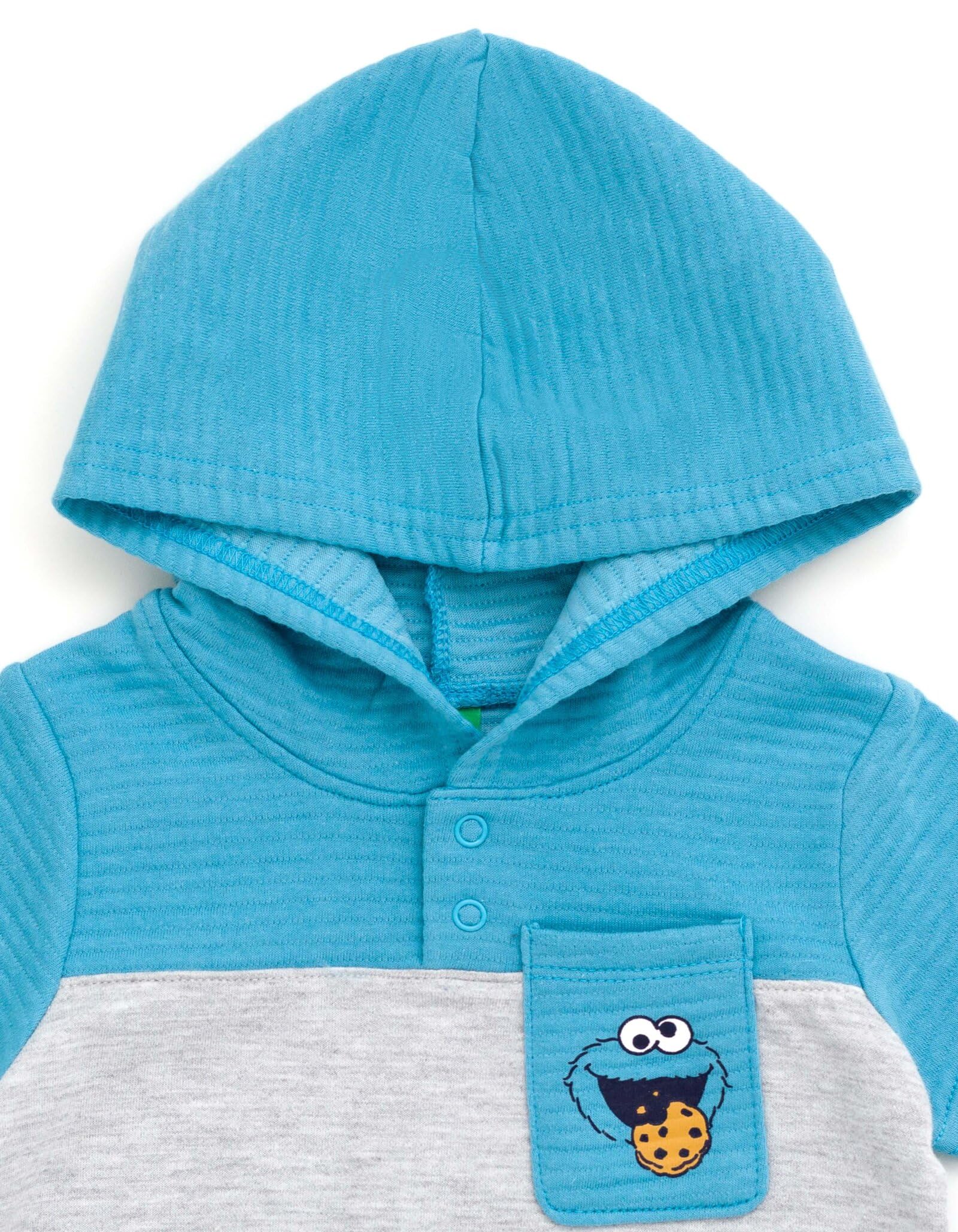 Officially licensed Sesame Street Cookie Monster infant boys long sleeve graphic hooded sweatshirt and shorts