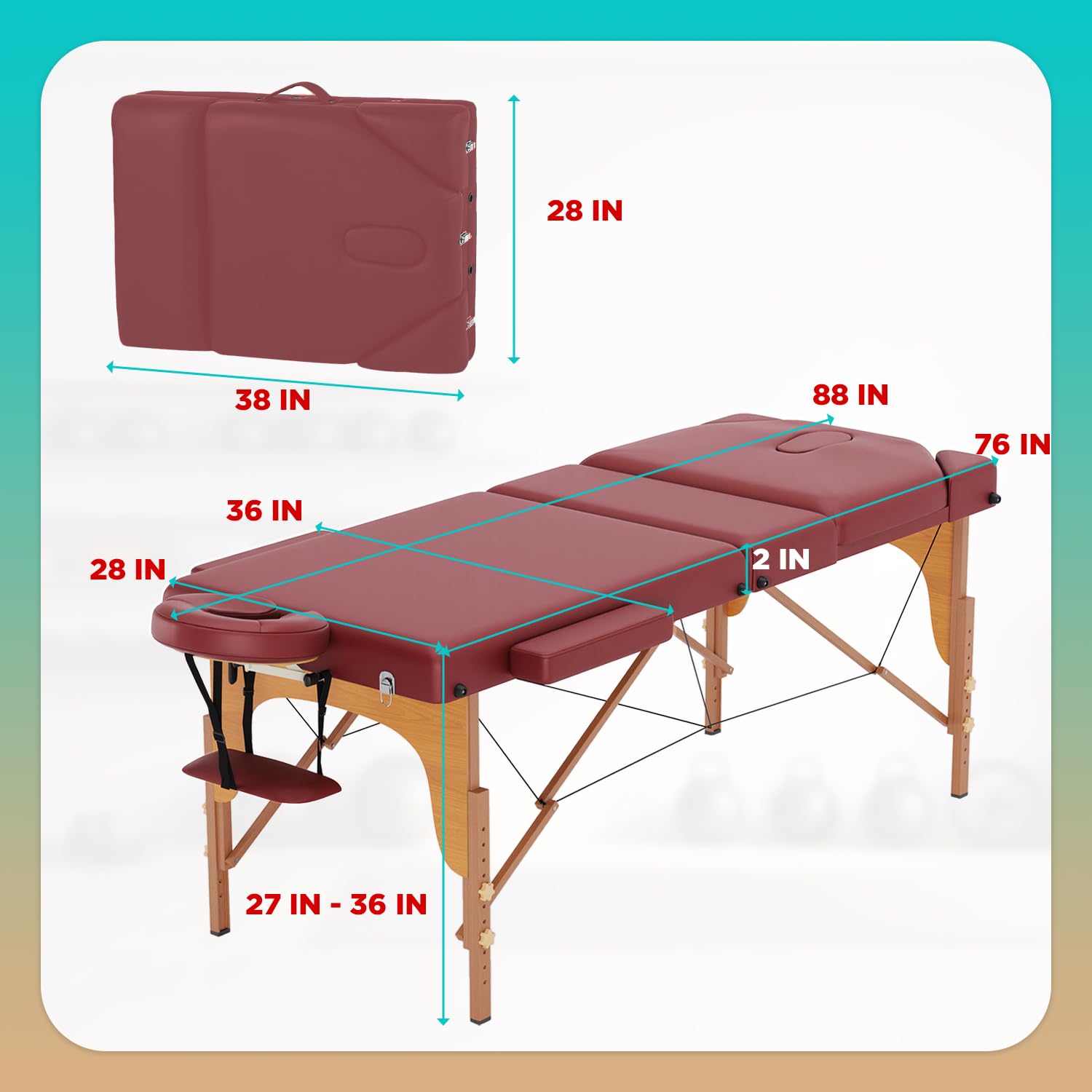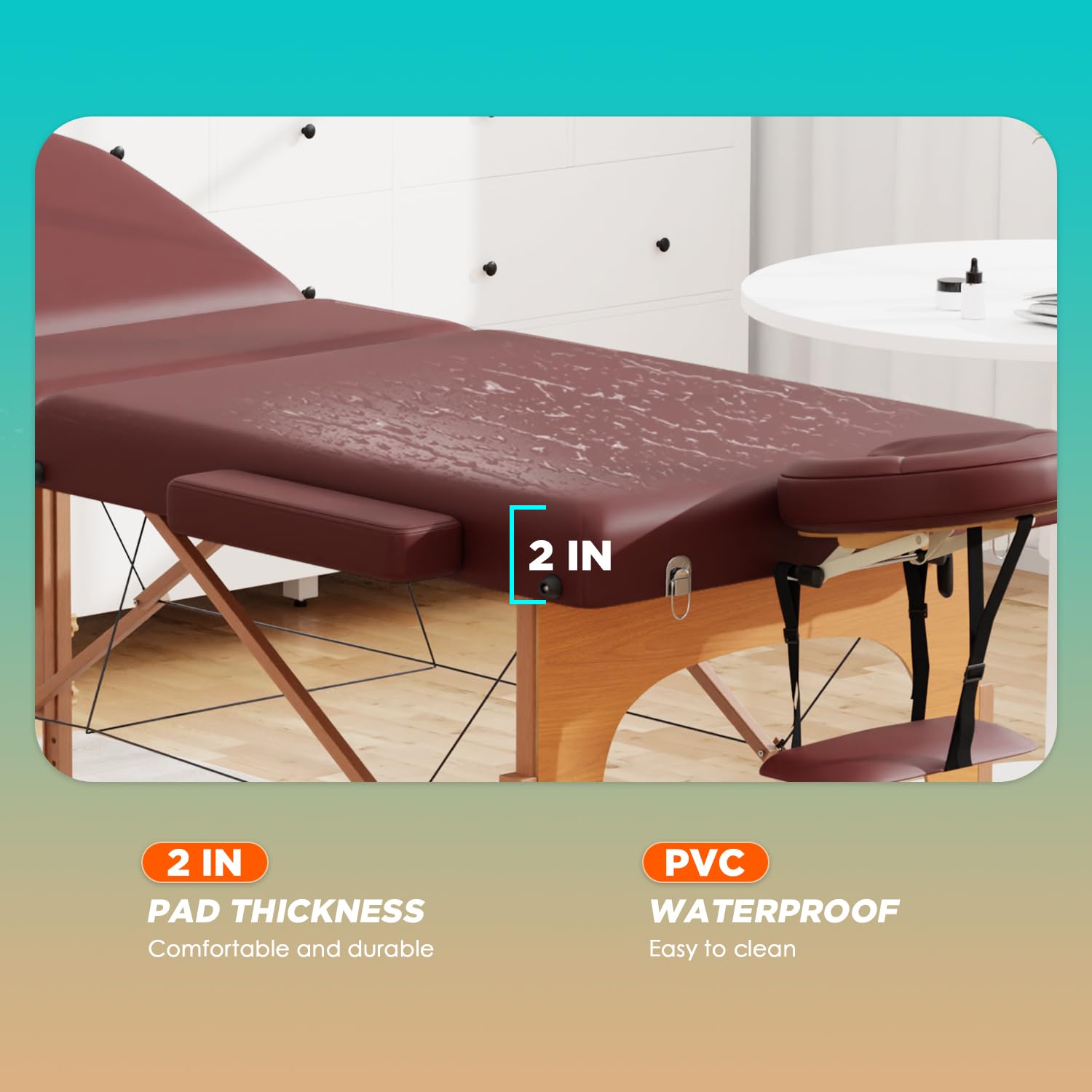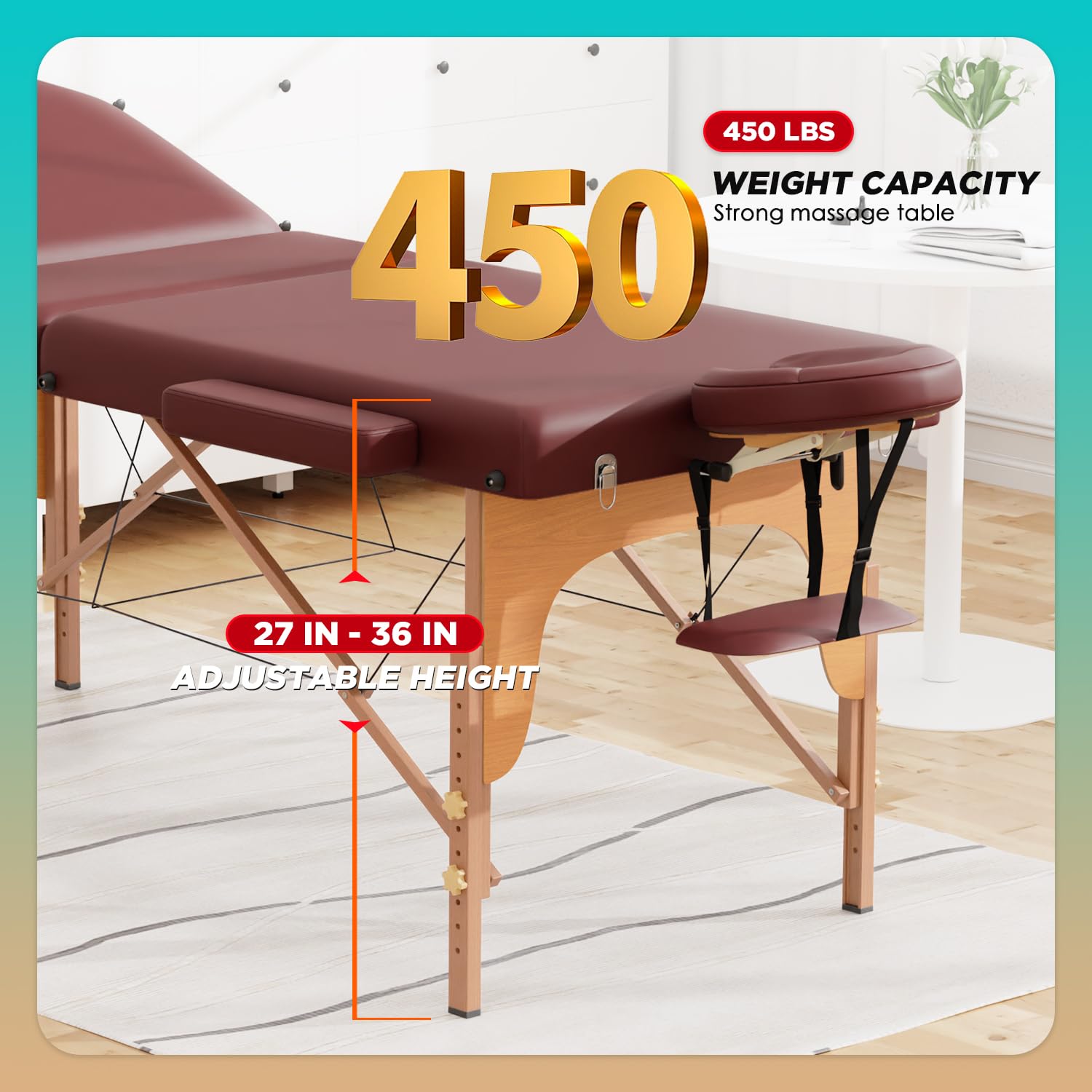 「THICK SPONGE & COMFORTABLE & STRONG」The massage table has a 2-inch-thick sponge, give you a soft and comfortable experience. The massage table made of highest quality beech , reinforced hardwood corner blocks for superior strength to enable up to 450lbs on the spa table.BestMassage Fold massage bed portable massage table.