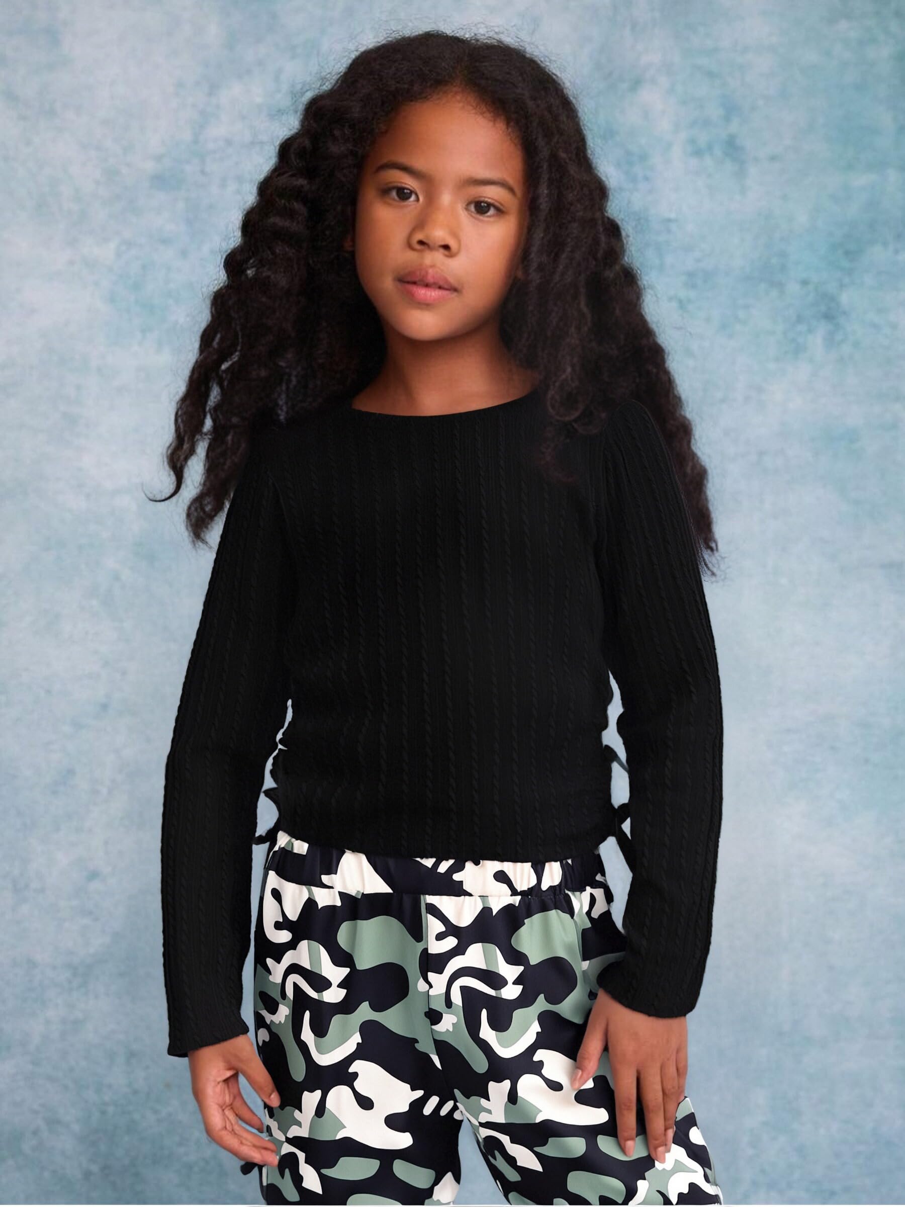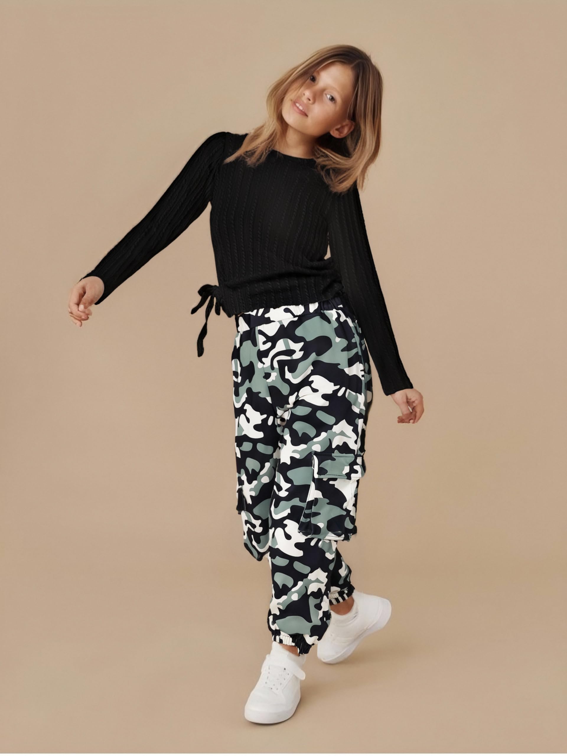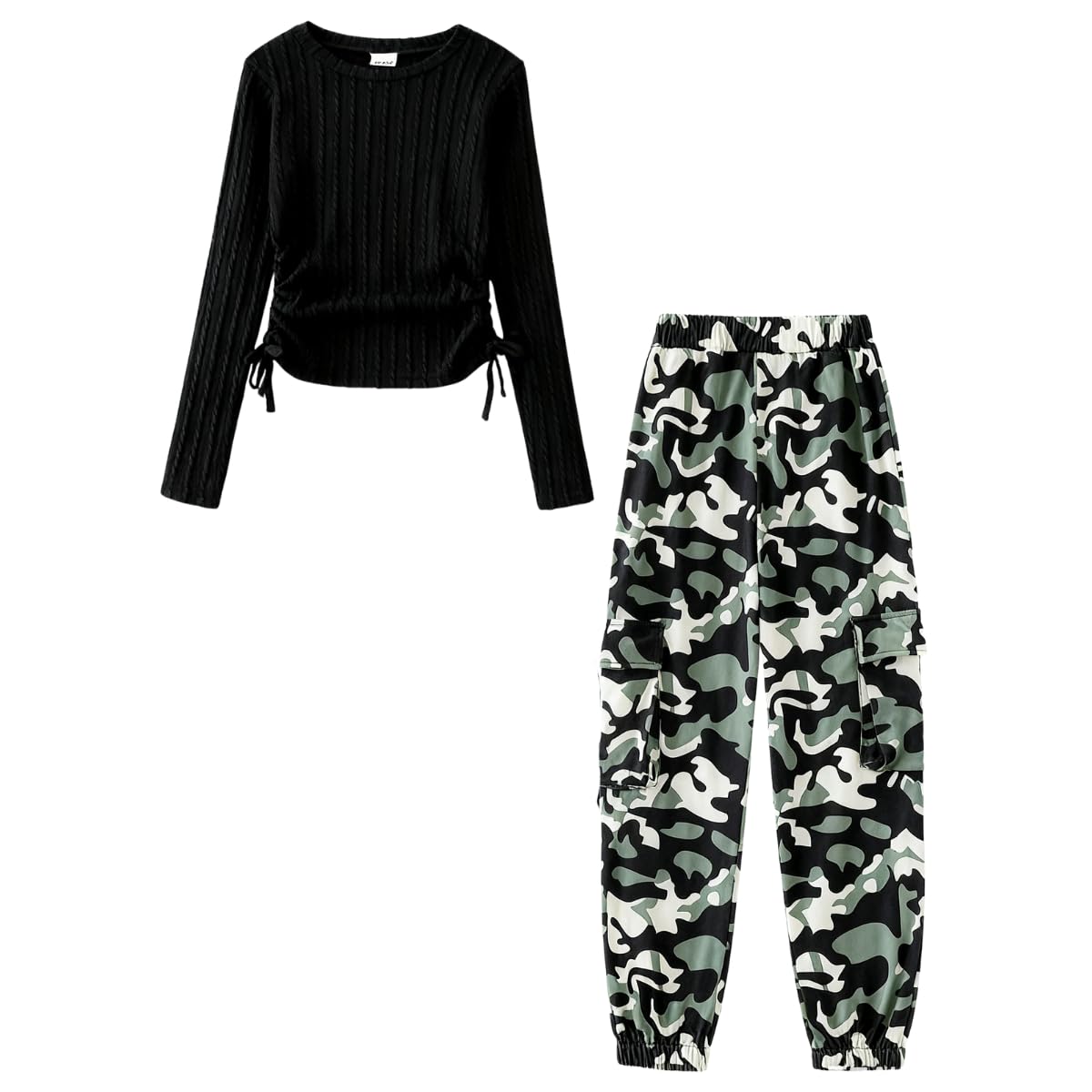 【Trendy Design】Features a long sleeve top with a stylish cropped fit and matching high-waisted cargo pants—designed for tween and teen girls who love fashion.