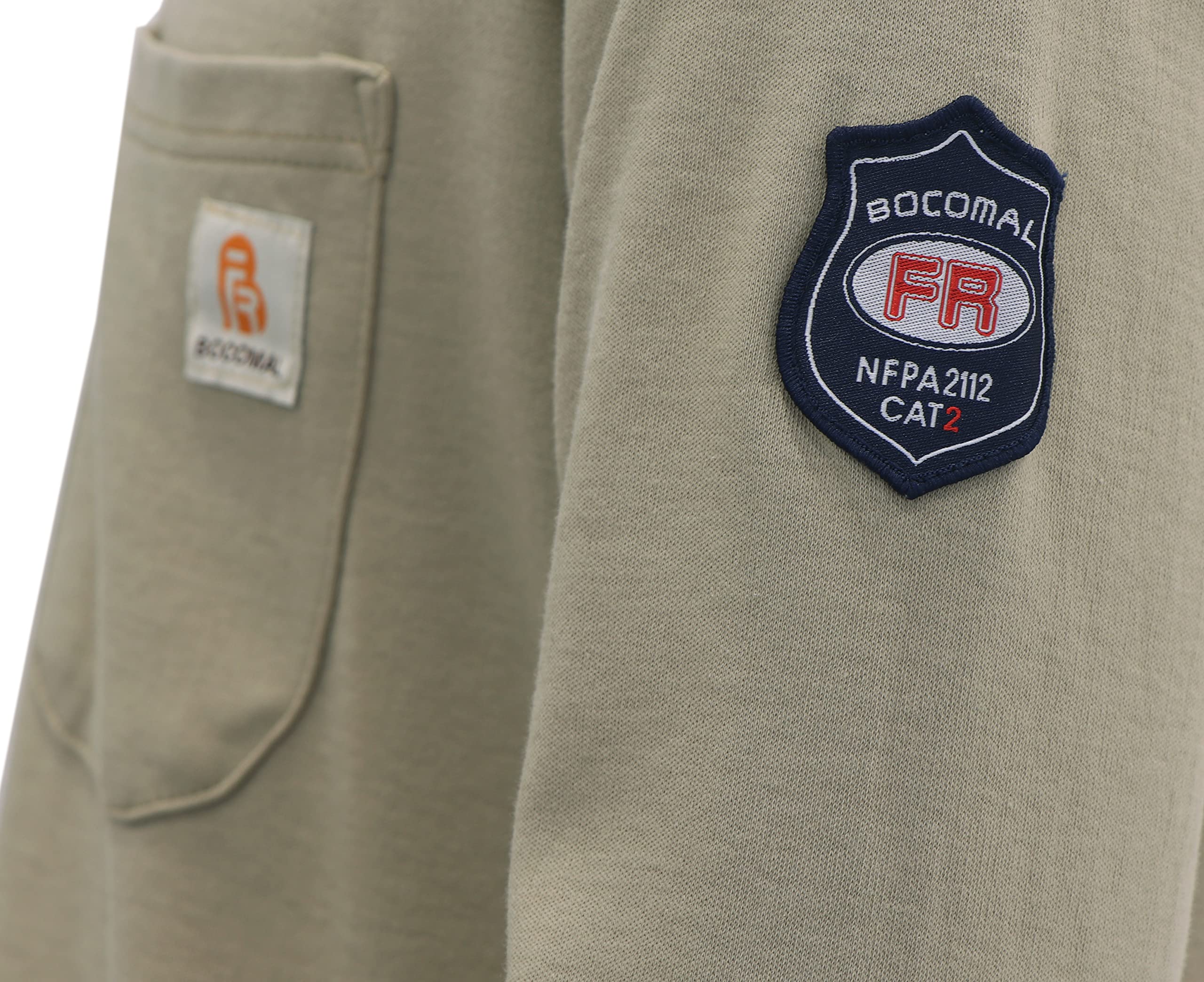FR MATRIALS:7OZ Cotton Knit FR Treated,FR Buttons,FR Sewing Threads!Clear FR Tag on arms and bottom front.More FR info On Neck Tag About UL Certification.We Attached A Small Sample Inside Package For Cunstomers Simple FR Try