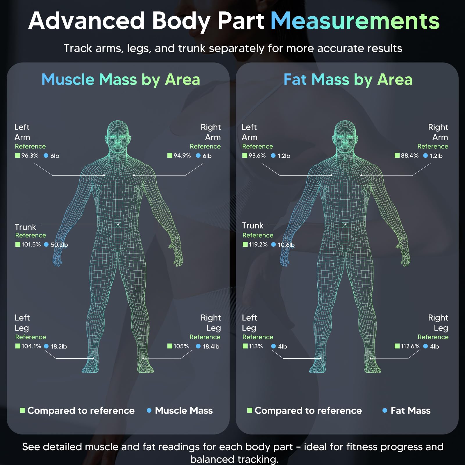 Comprehensive Body Data Analysis – 8-electrode segmental tech measures 26 metrics: weight, BMI, body fat %, visceral fat, muscle mass, bone mass, water, BMR & more, giving you a full health snapshot at home