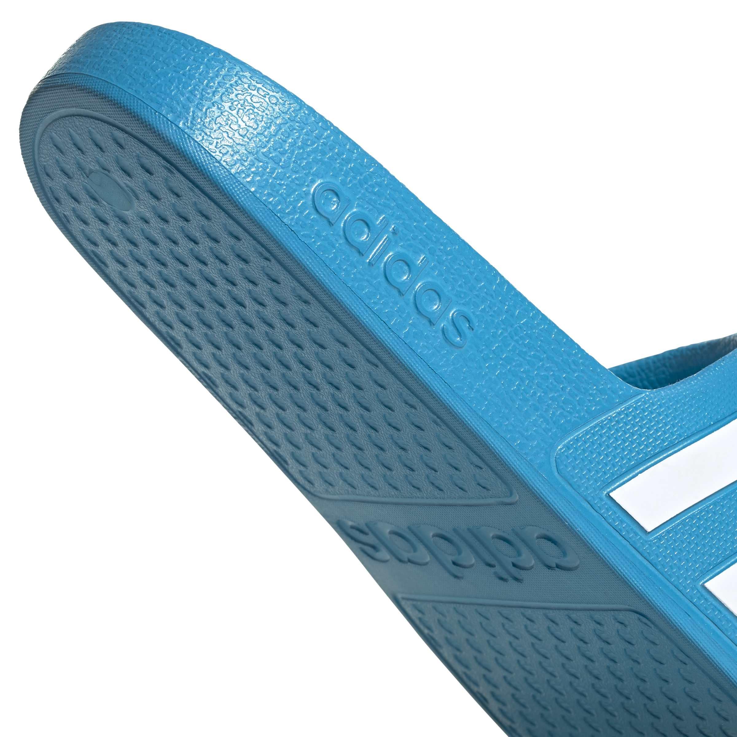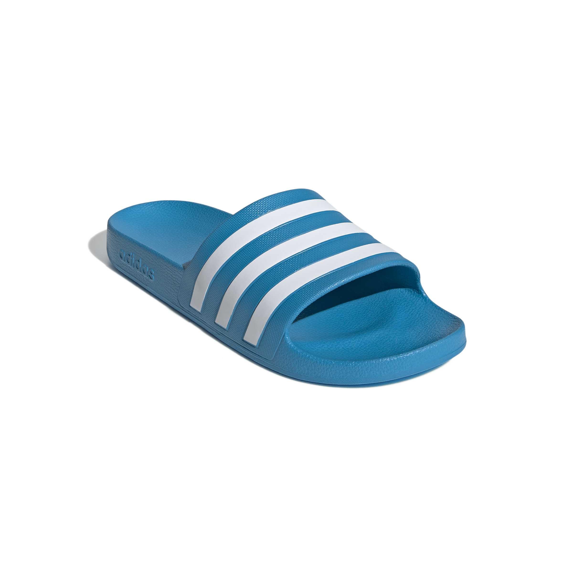Description These Adilette Aqua Slides bring welcome comfort to tired feet. They have a one-piece molded EVA upper and a plush Cloudfoam footbed. Hit the shower in adidas 3-Stripes.