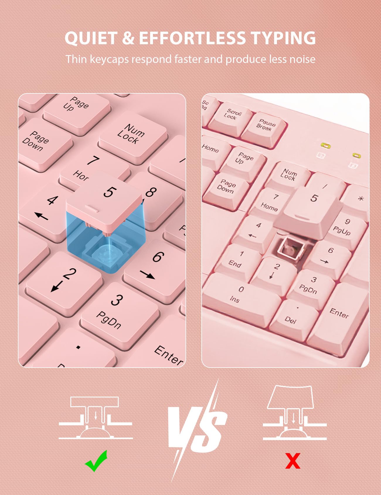 LESS NOISE, MORE FOCUS - Soft membrane keys for making typing quiet and smooth. You can now enjoy quiet and comfortable typing all day long. The wireless mouse feels just as clicky but makes 95% less noise. No more worry about disturbing others.
