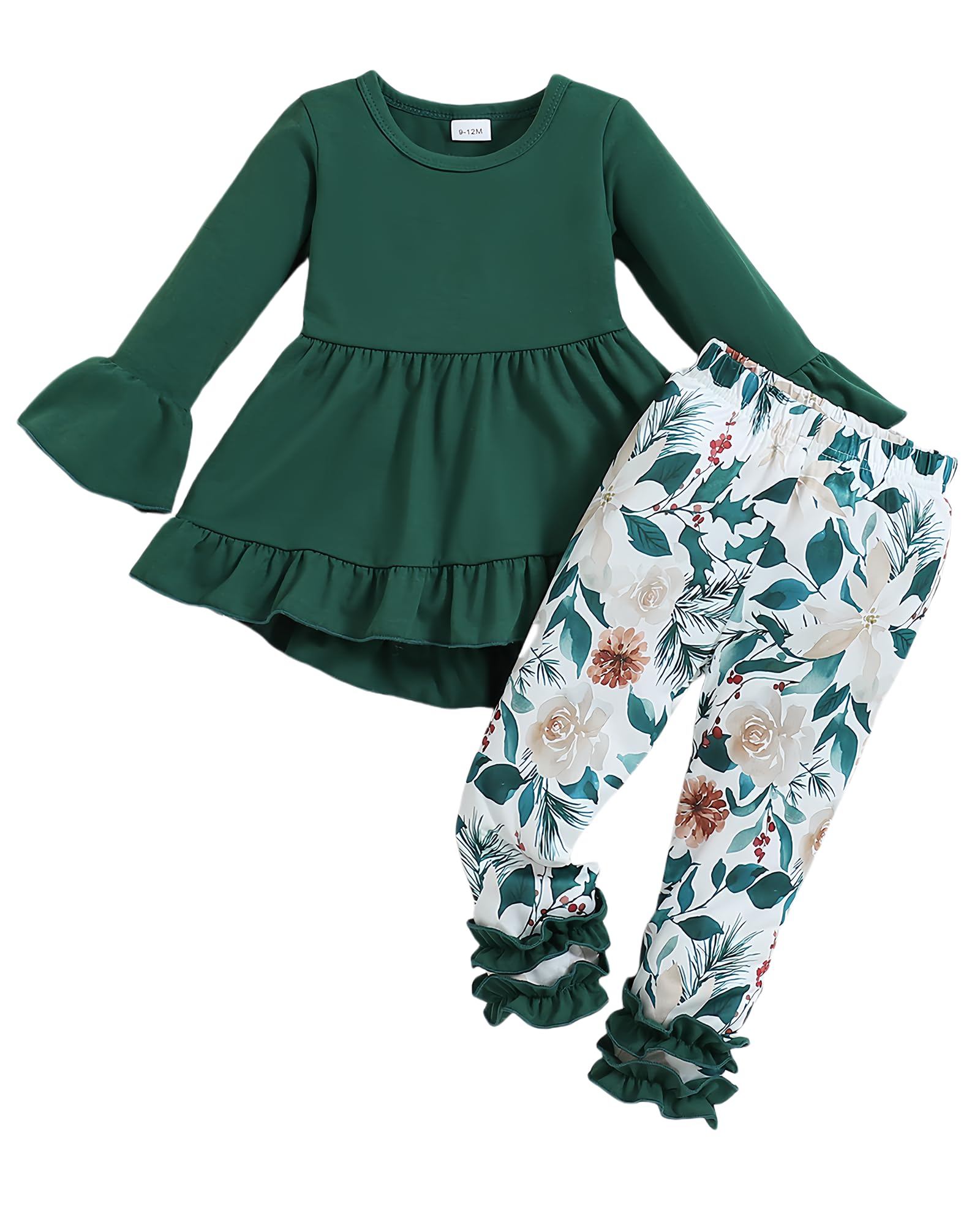 Package includes 1pc long sleeve shirt + 1pc baby girl pants.