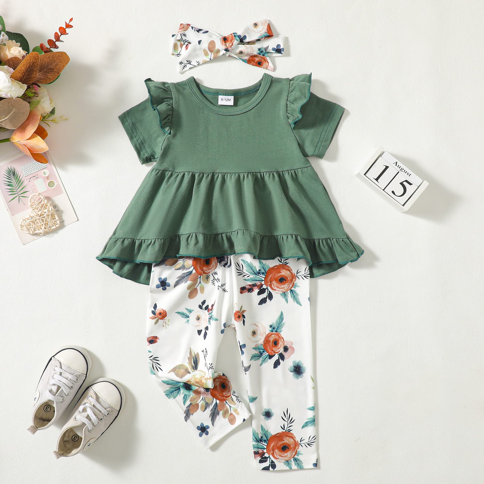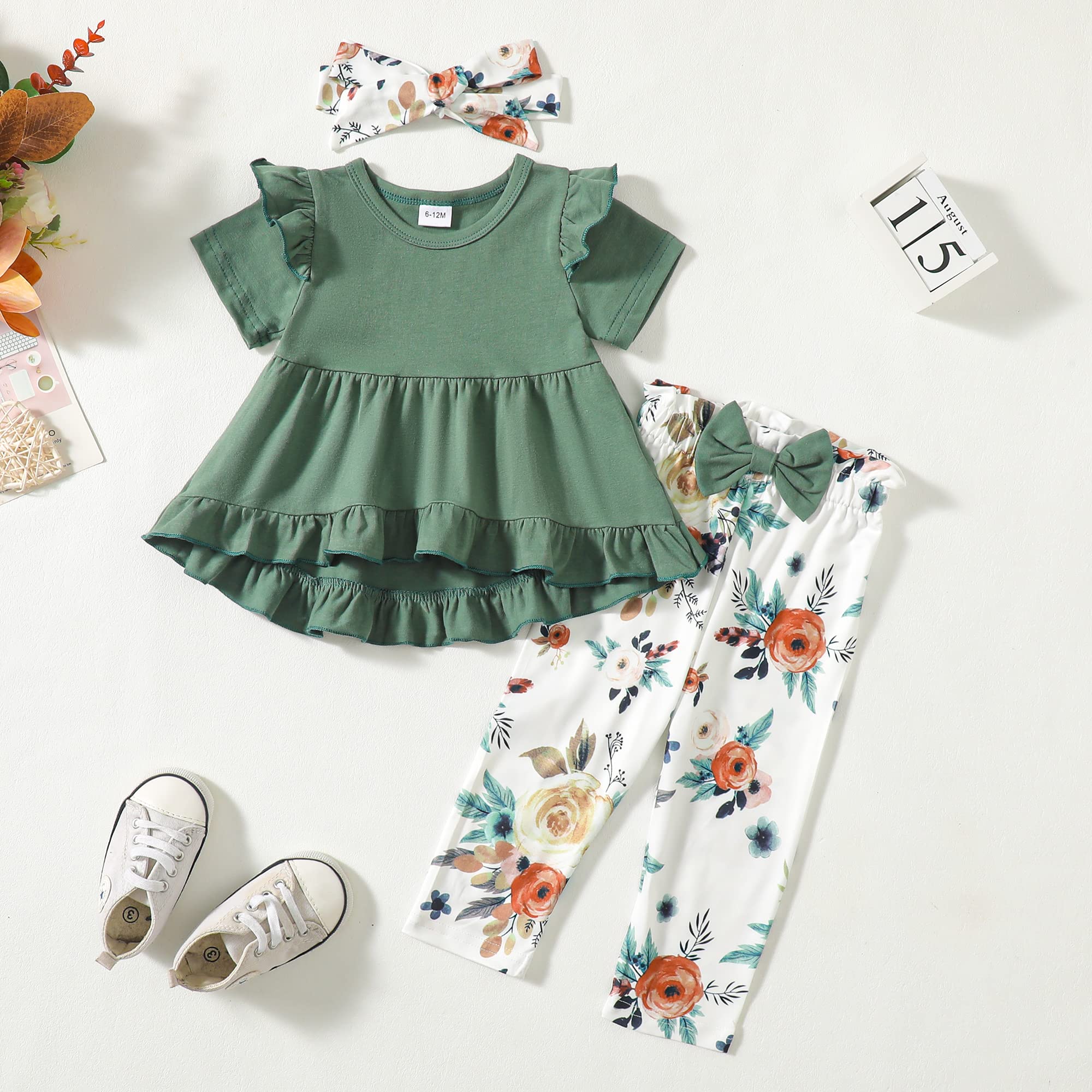 With details we love like ruffle hem design,cute print,as well as elastic waist,this cute girl clothes is sure to brighten up your baby girl's day. All the details make the perfect gift for baby.