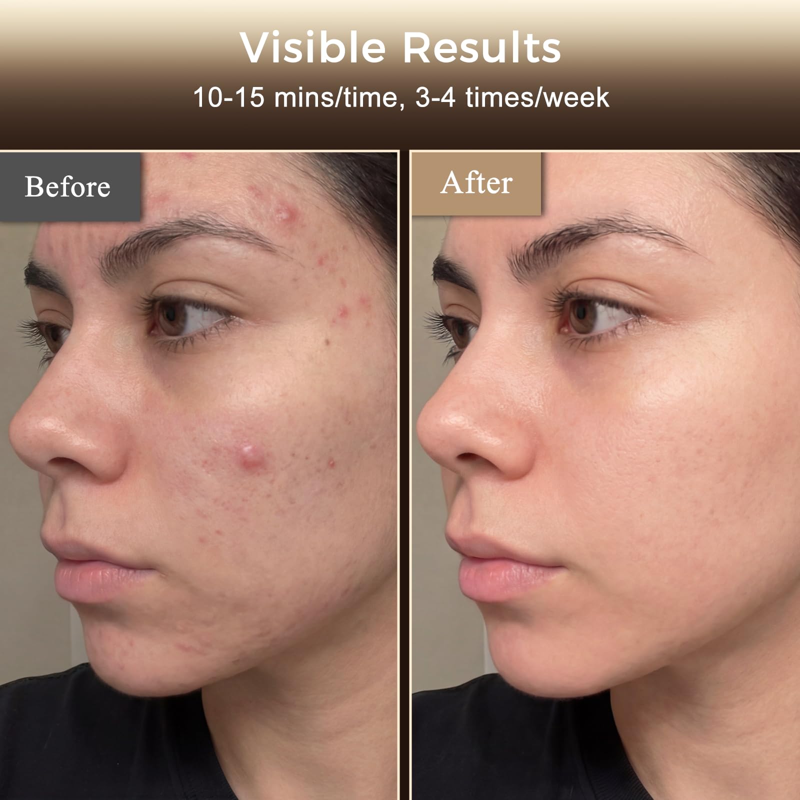 Clinically Proven Light Therapy: Red light therapy mask for face features medical-grade LEDs with 470nm, 630nm, 660nm, and 850nm wavelengths to smooth fine lines and boost collagen production. Red + Blue Light targets aging and acne, while Blue Light soothes irritation and prevents breakouts. Each 10-minute session delivers 70mW/cm²-100mW/cm² of energy, ensuring deep absorption for safe, effective, and long-lasting skin rejuvenation.