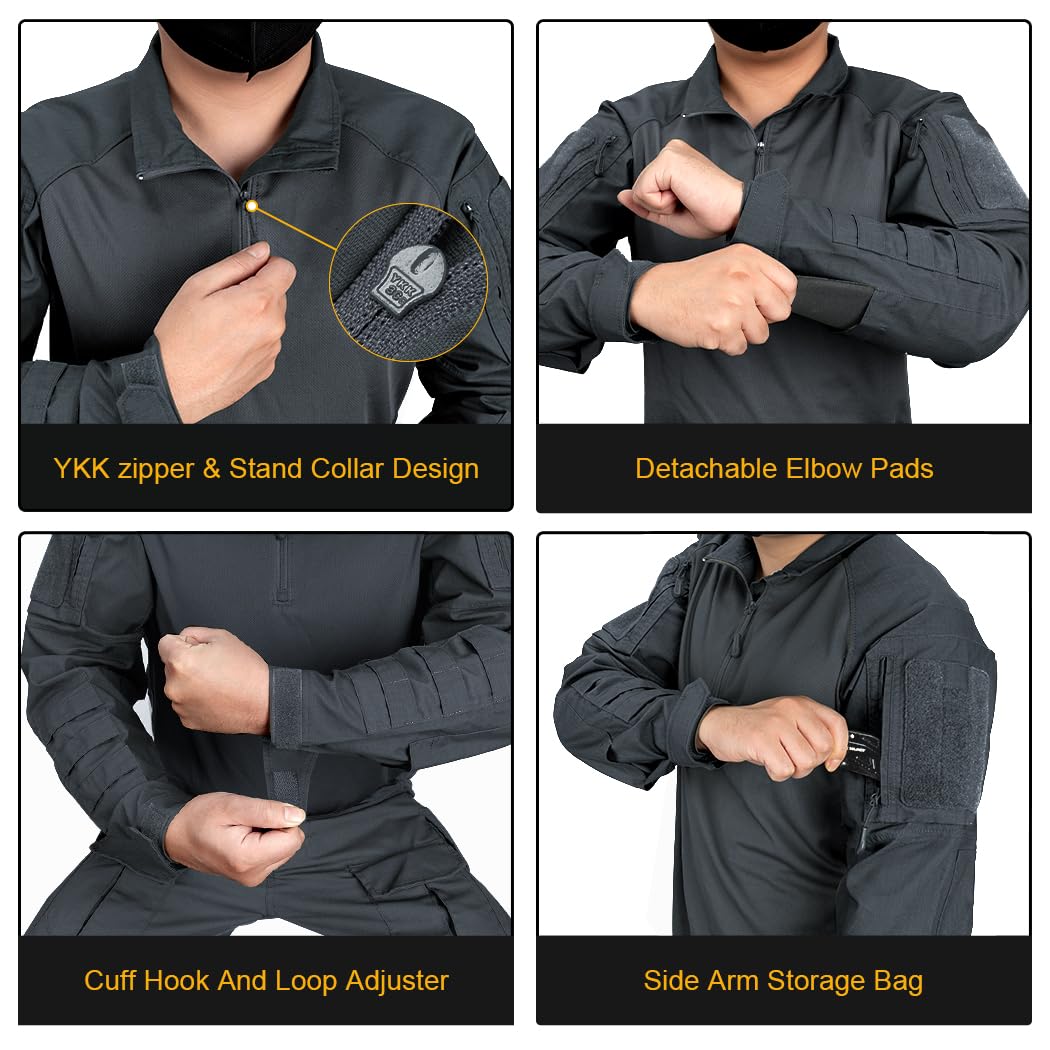 4. Adjustable hook and loop cuffs and removable elbow pads add versatility and comfort, and the double rows of Molle slots on the sleeves making it easy to stash small tactical items such as tourniquets in an emergency.