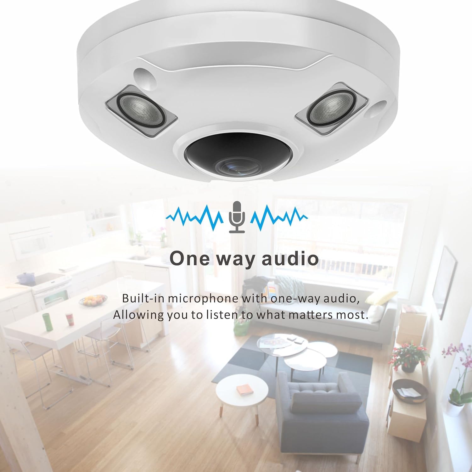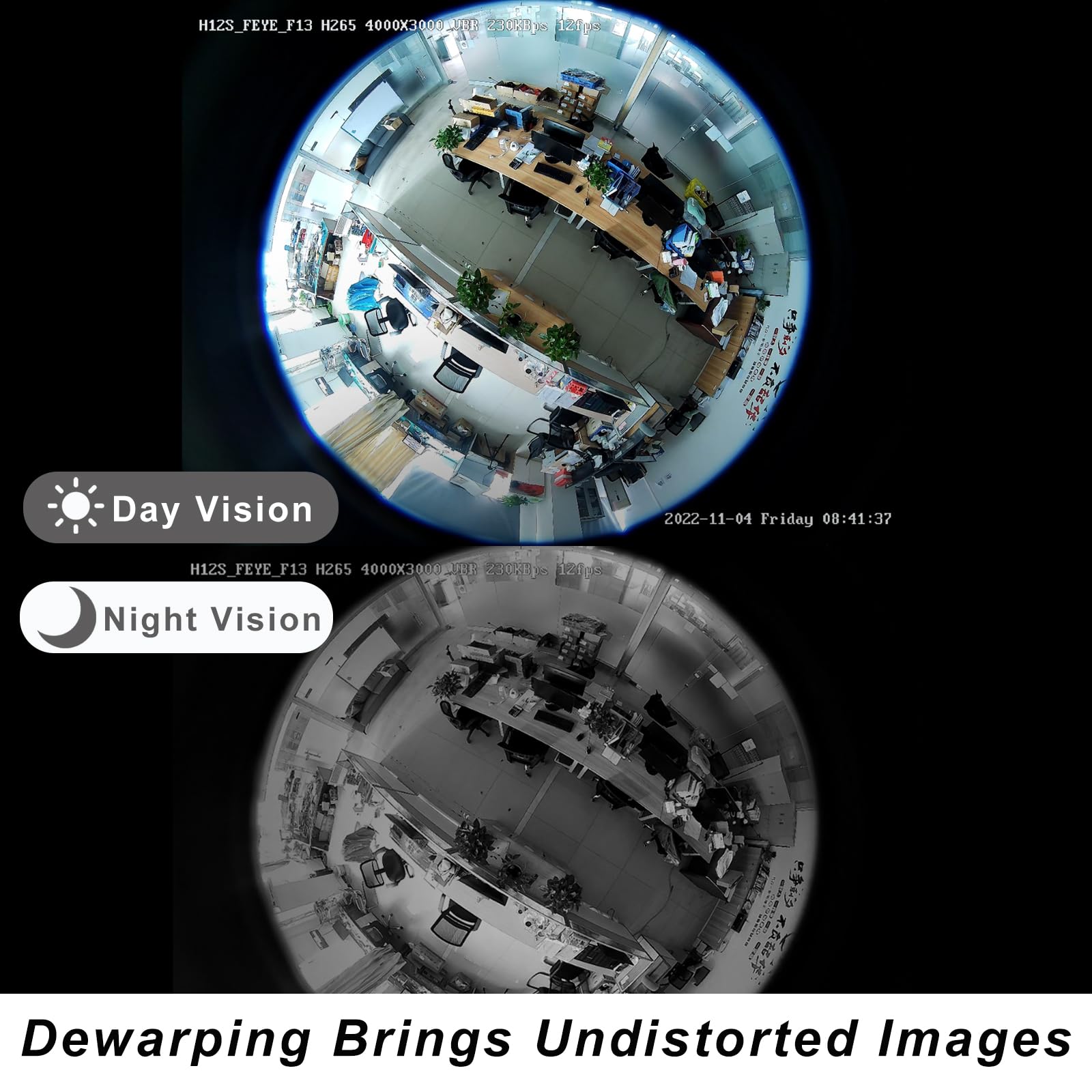 【Fisheye Dewarping Brings Undistorted Images】The 12mp Fisheye IP Camera has made a great improvement, fisheye dewarping and 12mp ultra high definition bring your much more clearly and undistorted images, and can be installed with multiple options according to your demands.