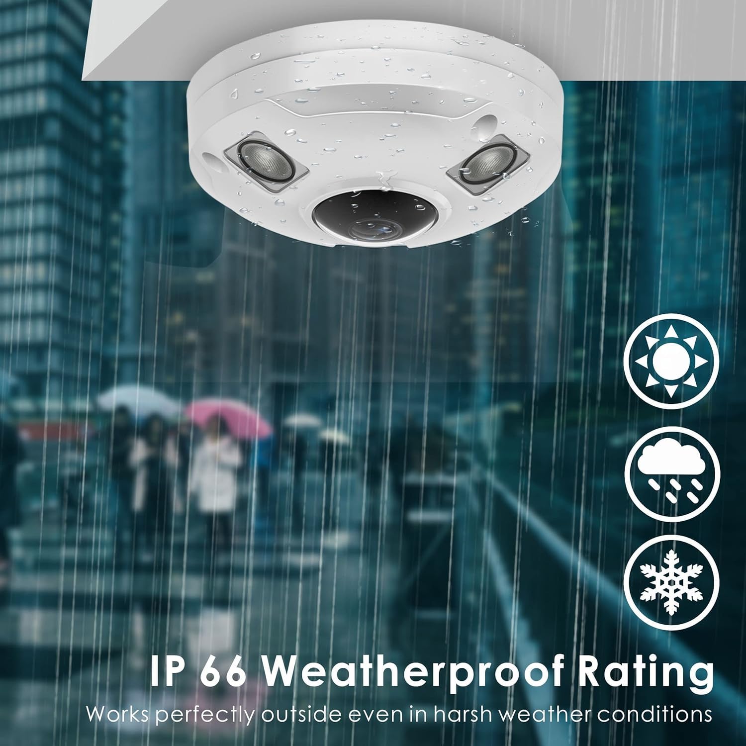 【Powerful Features】The 12mp 6K Fisheye IP Camera adopts sigmastar Mstar359 SoC+ 1/2.3'' IMX577 new technology Starvis Starlight Sensing Sensor, provides 120dB WDR(Wide Dynamic Range)/3D NR/Motion Detection/Human Body Detection functions. Compatible with multiple Web Browsers, like IE/Microsoft Edge/Firefox, Google Chrome/Safari etc.
