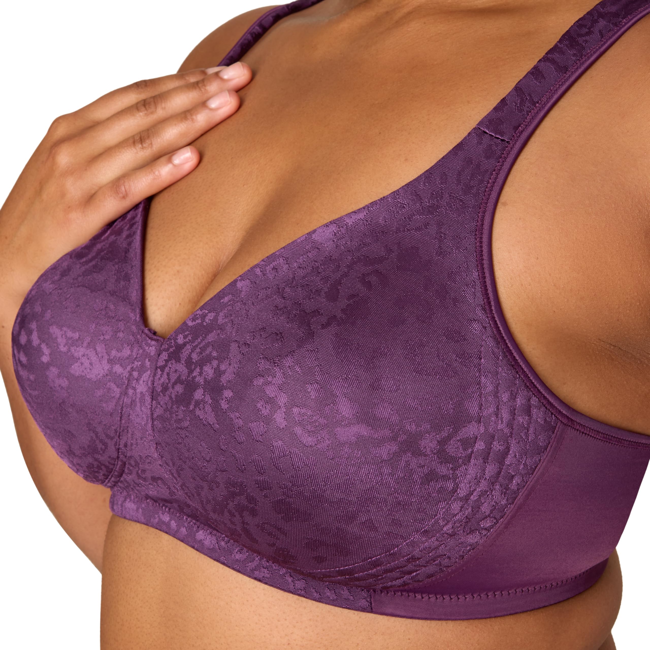 Description Get the lift you want, the support you need, and the wireless comfort you deserve with the Playtex® 18 Hour® Wireless Lift Bra. Designed for all-day wear, this full-coverage bra for women features Magic Rings® panels that shape and support without wires. The non-foam cups provide a natural lift while keeping you comfortably supported from morning to night. Cool Comfort® moisture-wicking jacquard fabric helps you stay cool and dry in any season. Cushioned, no-slip straps reduce shoulder pressure and stay in place as you move. The TruSUPPORT® system offers targeted support through the cups, sides, and back for a smoothing effect under clothes. Available in pretty floral and animal prints, this women's wirefree bra is the perfect blend of style and everyday function. Whether you’re heading to work or relaxing at home, this wireless lift bra keeps you feeling confident and supported all day long.