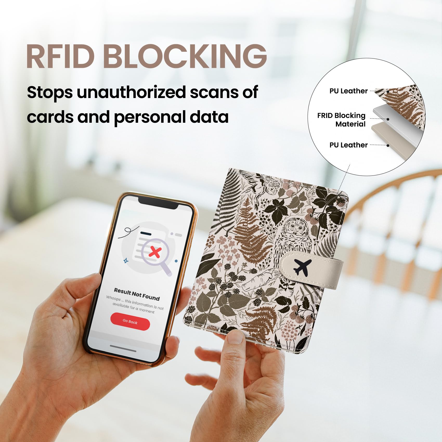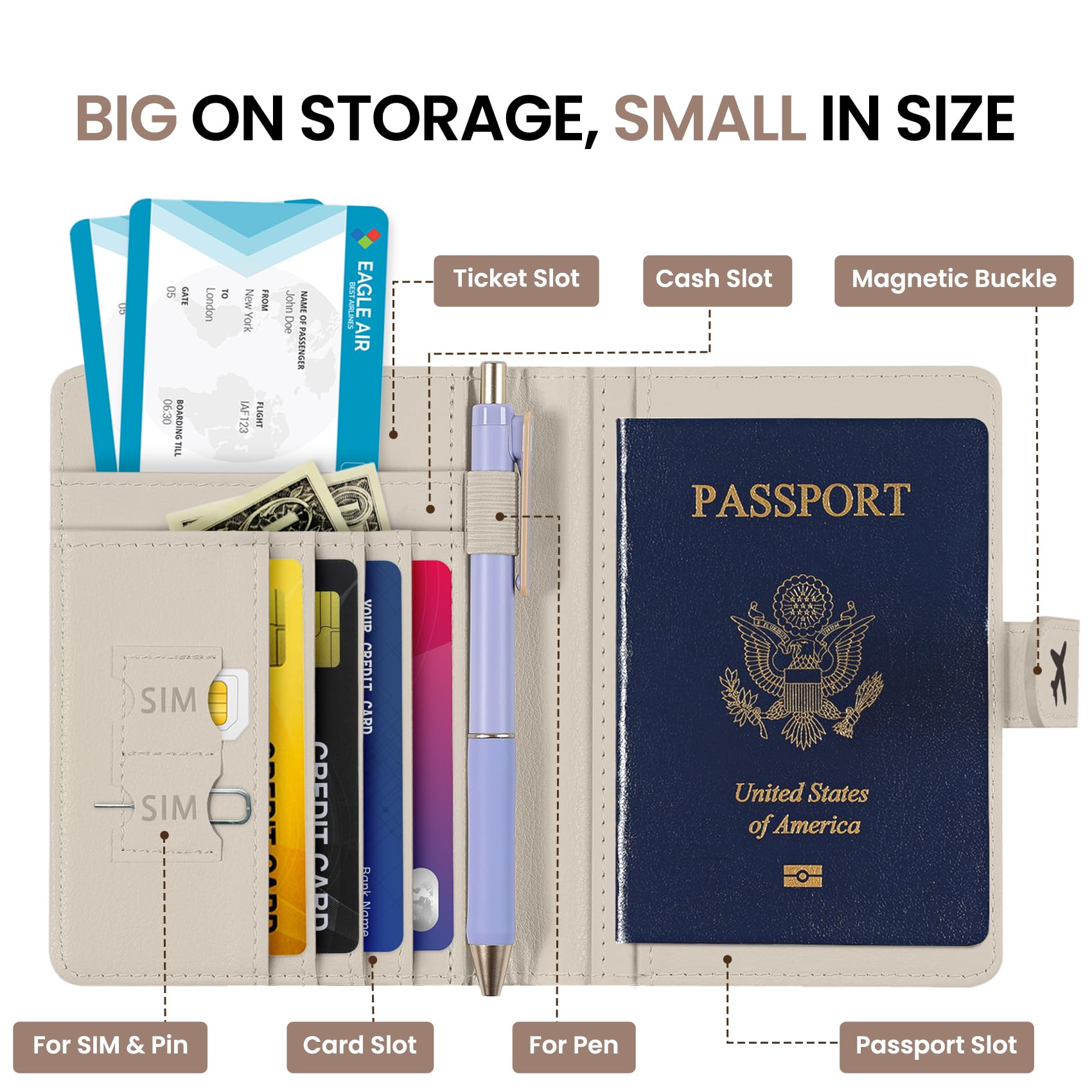 Instant Access & Magnetic Closure: Access your travel essentials in a snap. Our passport holder features a smooth magnetic closure for quick entry and secure storage - no more fumbling with zippers or snaps. Designed for effortless travel.