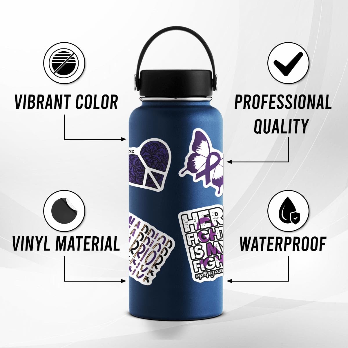 VINYL WATERPROOF STICKERS FOR WATER BOTTLES - These waterproof stickers have a strong adhesive that will not peel off your scrapbooking and are designed to withstand all weather conditions. They are applied to the outside of the vehicle, water bottles, helmets, phone cases, suitcases, laptops, computers, journaling, cups, tumblers, luggage, bikes, and more.
