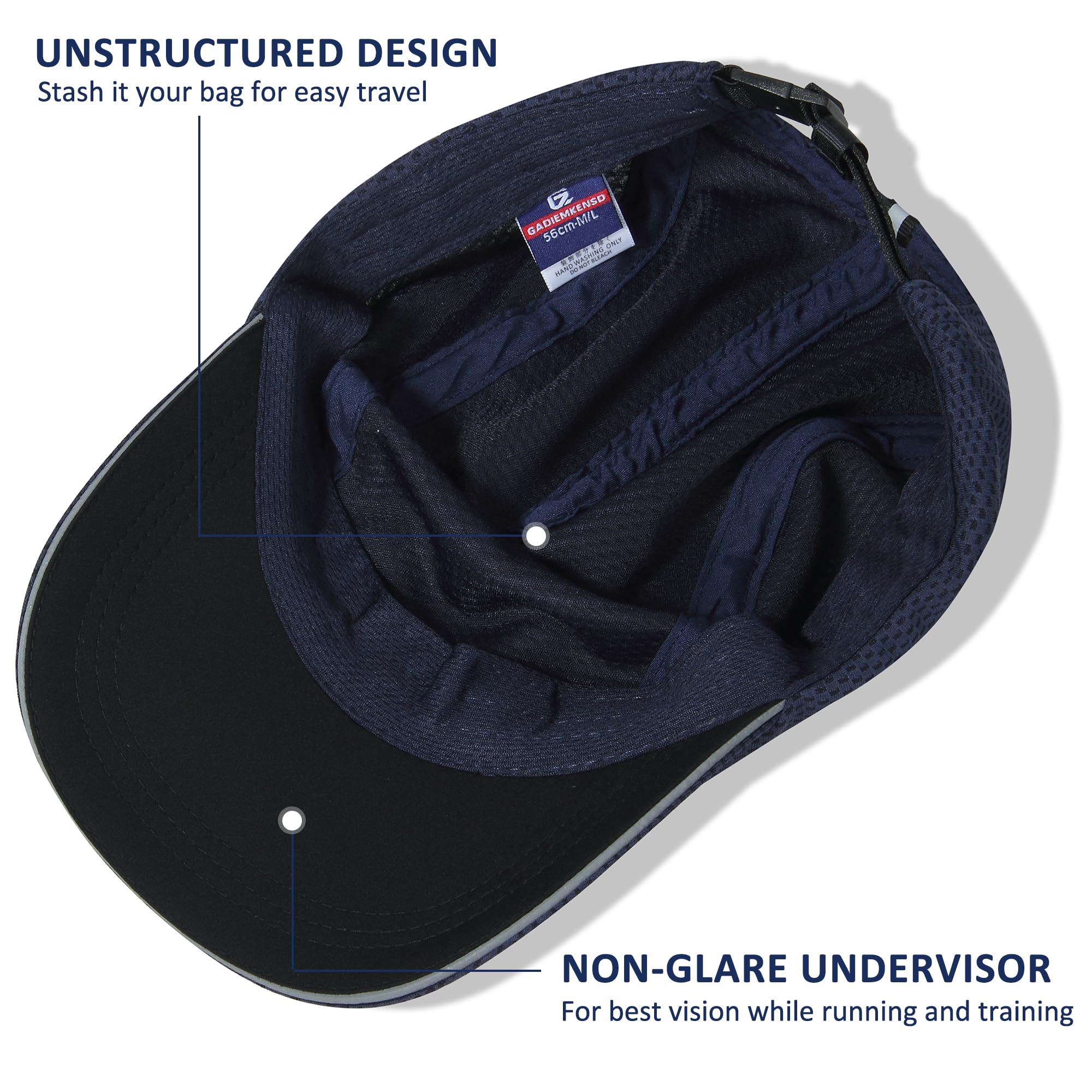 Retroreflective Safety Details: This cool sports cap for women features a stylish reflective ‘sandwich’ trim (also a small reflective details appears on the back) that enhances visibility and safety during those early morning and late afternoon running workouts