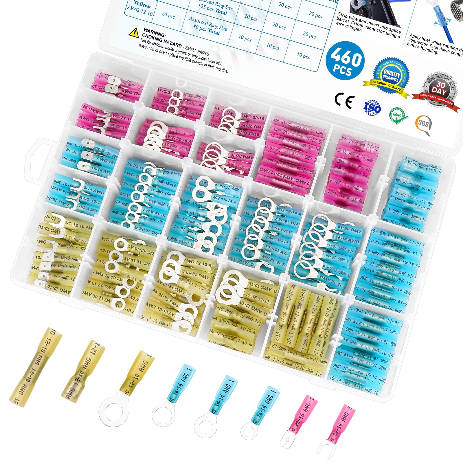 [DURABILITY] Each butt, ring and fork terminal features a thick tinned copper barrel that resists corrosion to hold the wire tight when crimped. The barrel is created from one piece of copper that eliminates the problem of the barrel opening. Your wire will never slip out of the connector