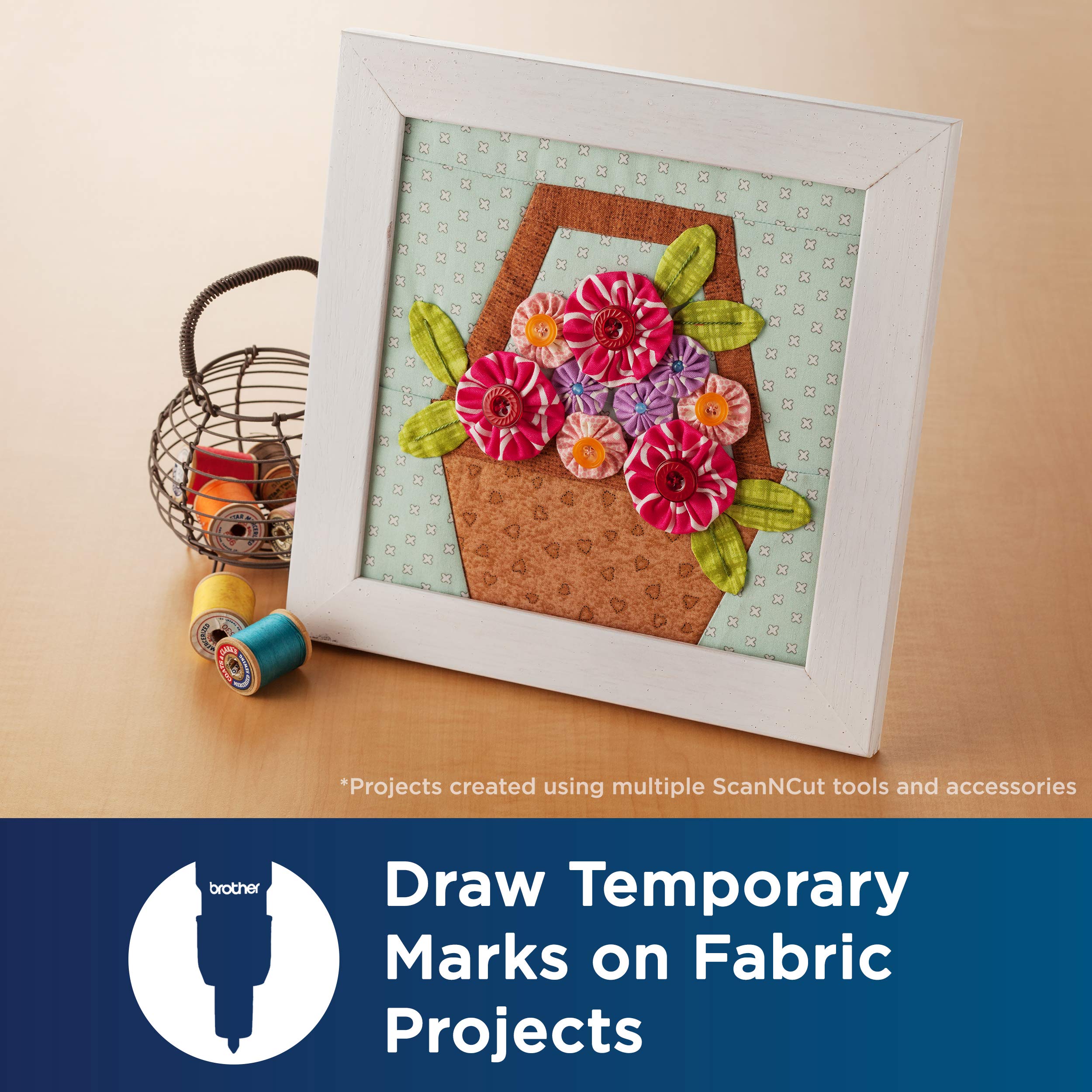 ADD TEMPORARY OUTLINES TO CRAFTS PROJECTS: Draw erasable marks on fabrics using your ScanNCut, including even seam allowances for sewing and quilting projects, pattern markings and more