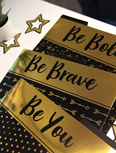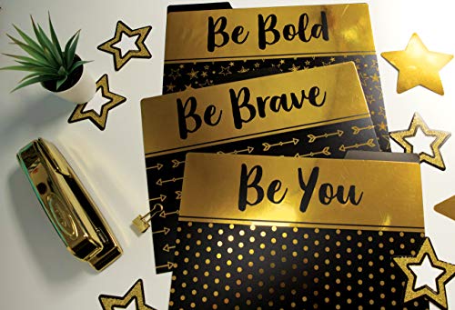What’s Included: The set of file folders includes six black folders with gold star designs and inspirational quotes on each of the folders. A file organizer tab is included on each folder to create a personalized label for each folder.