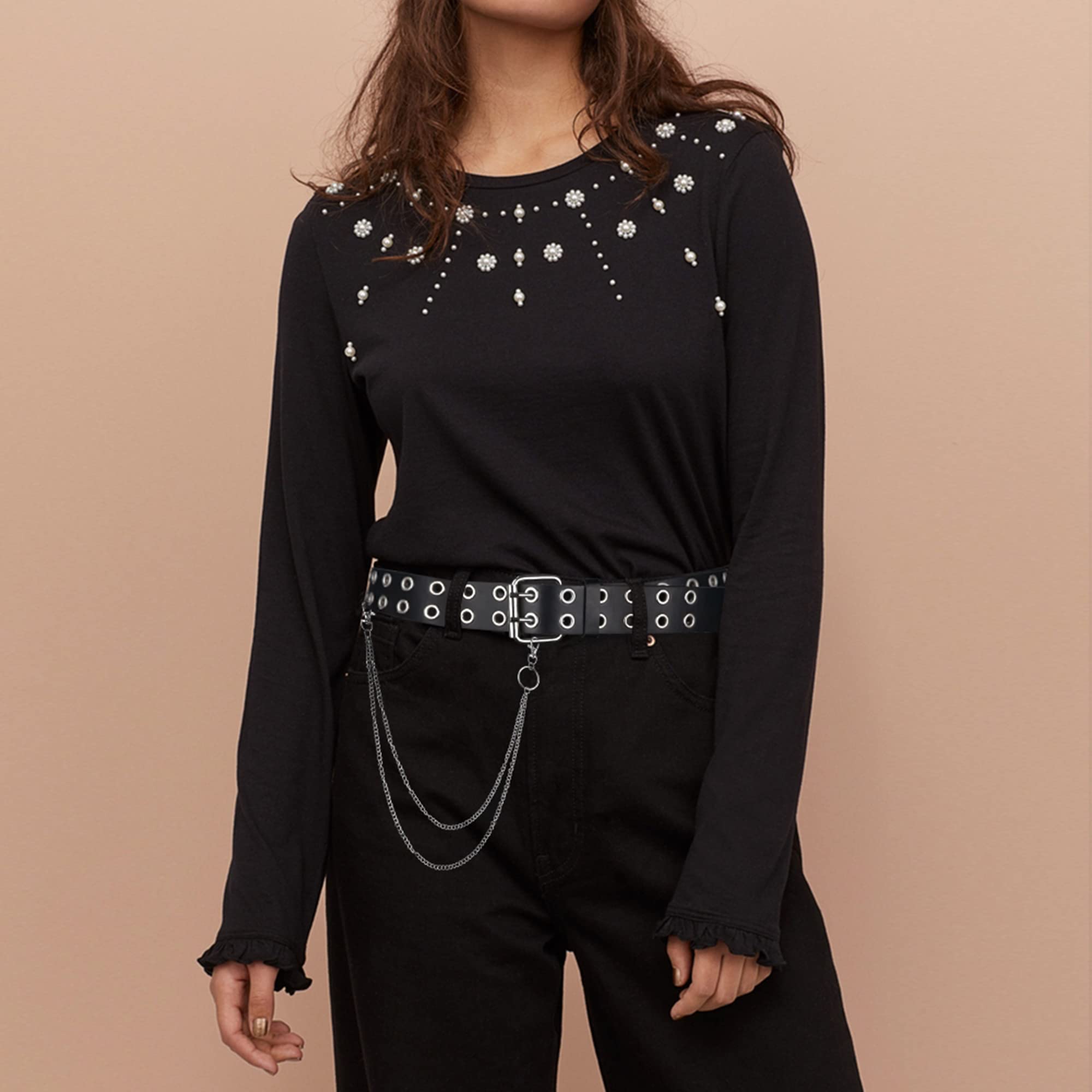 Perfect Belts For Jeans: This grommet belt is functional enough to be an everyday use work belt to match jeans, pants, skirts, etc, and it can also be a cool accessory for teenagers for goth cosplay parties