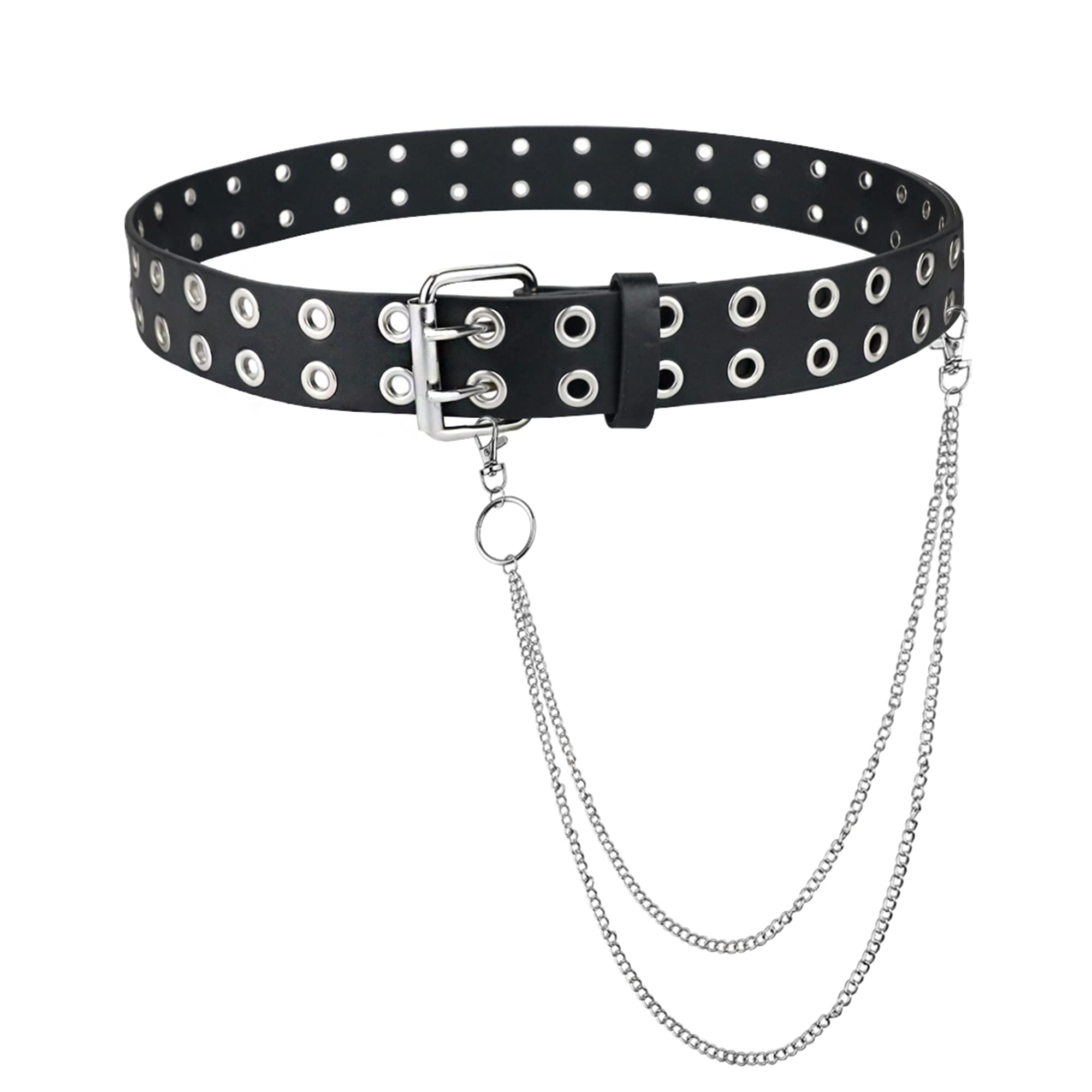 Grommets Studded Belt: The double studded grommet on the black strap will easily give you a punk rock look during your casual life, and the continuous metal eyelets make this unisex leather belt more convenient to adjust for different waist sizes