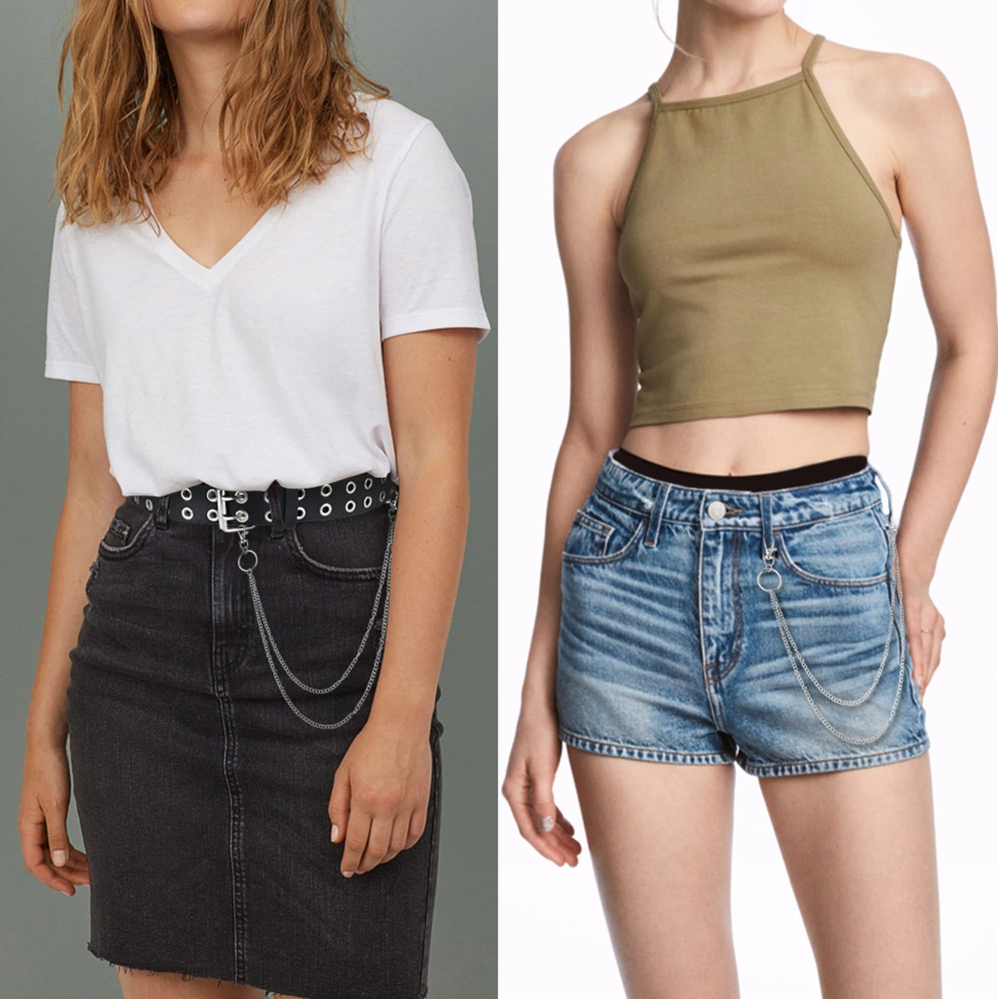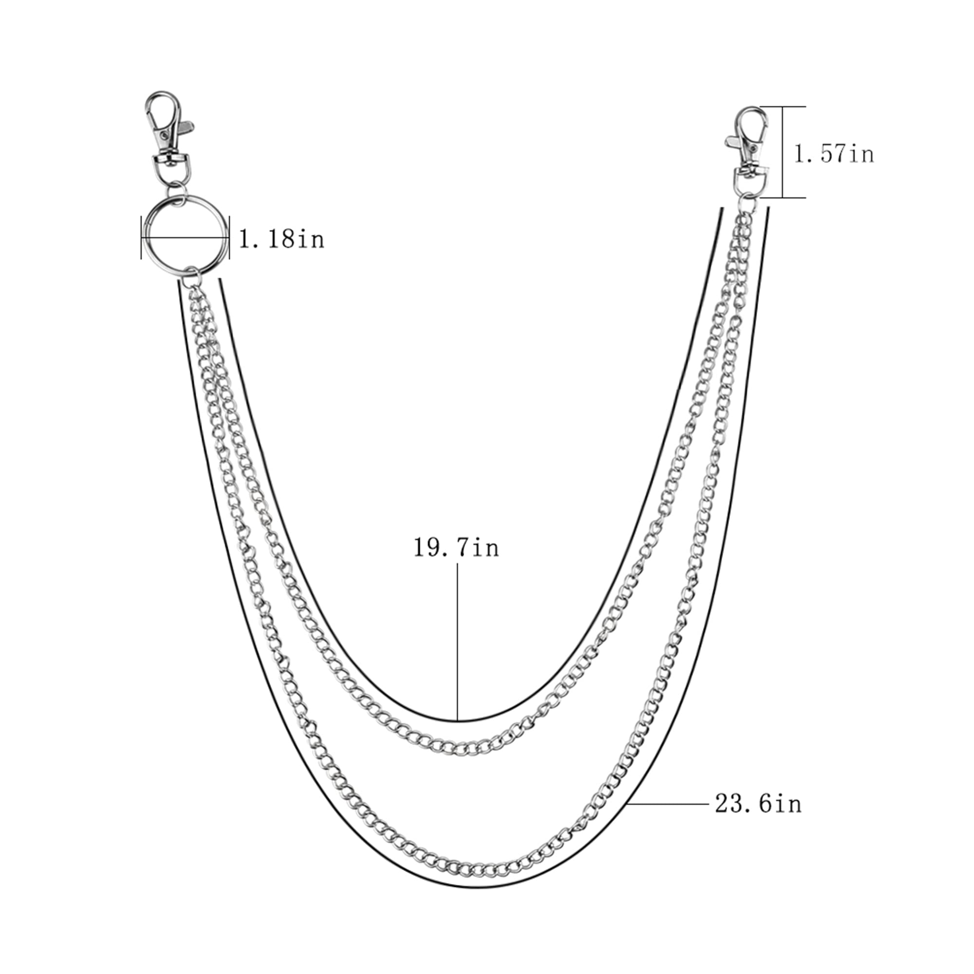 Four Sizes Available: 39" long for waist under 33", 43" long for waist under 37", 47" long for waist under 41", 51" long for waist under 45"; 1.38" wide belt is easy to fit most pants loops; Chain length: upper: 19.7 inches, under: 23.6 inches