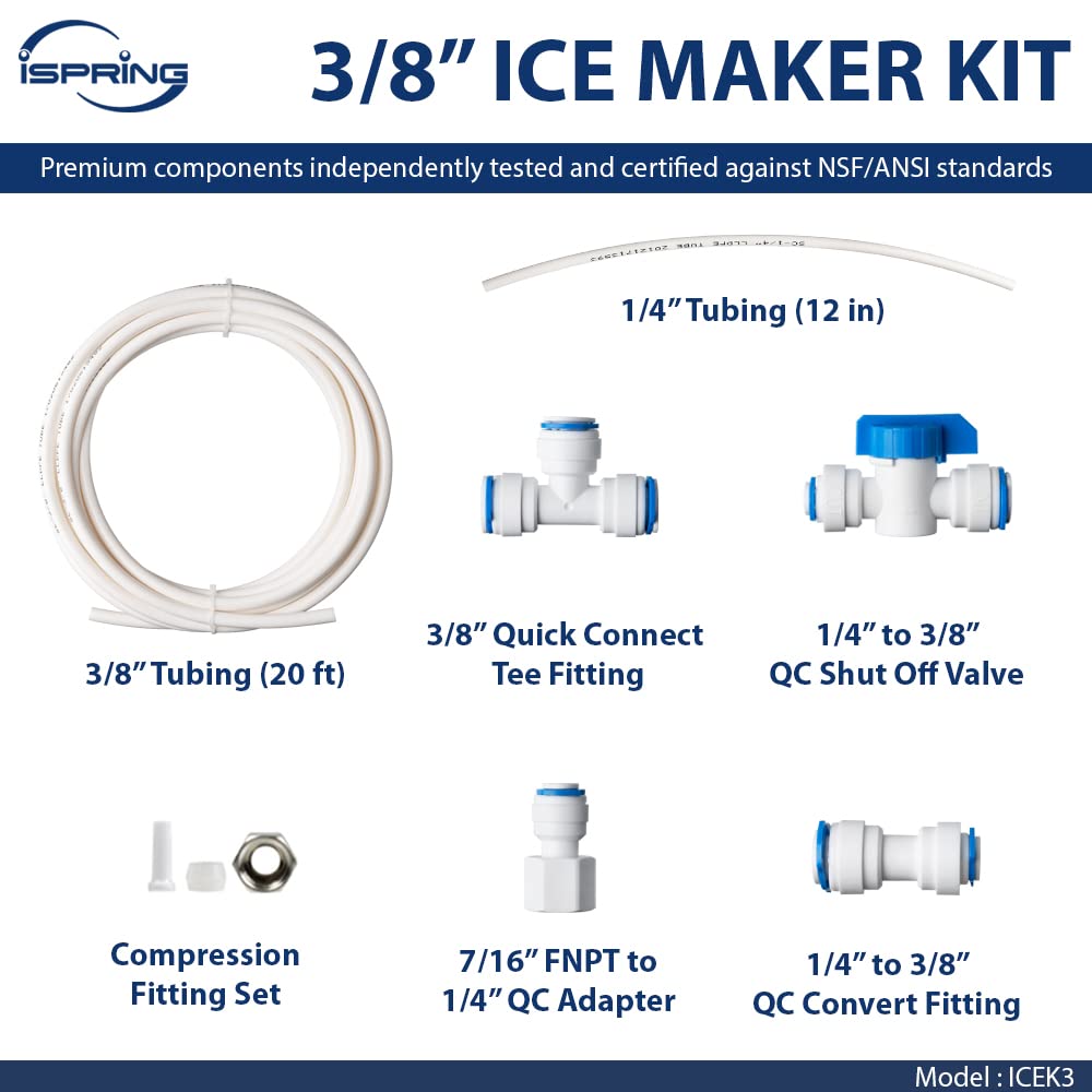 iSpring ICEK3 3/8" Tubing Water Line Splitter and Reverse Osmosis Refrigerator Ice Maker Kit, Fits PH100, RO100, US15 Series, 20 feet, Everything Included for Installation