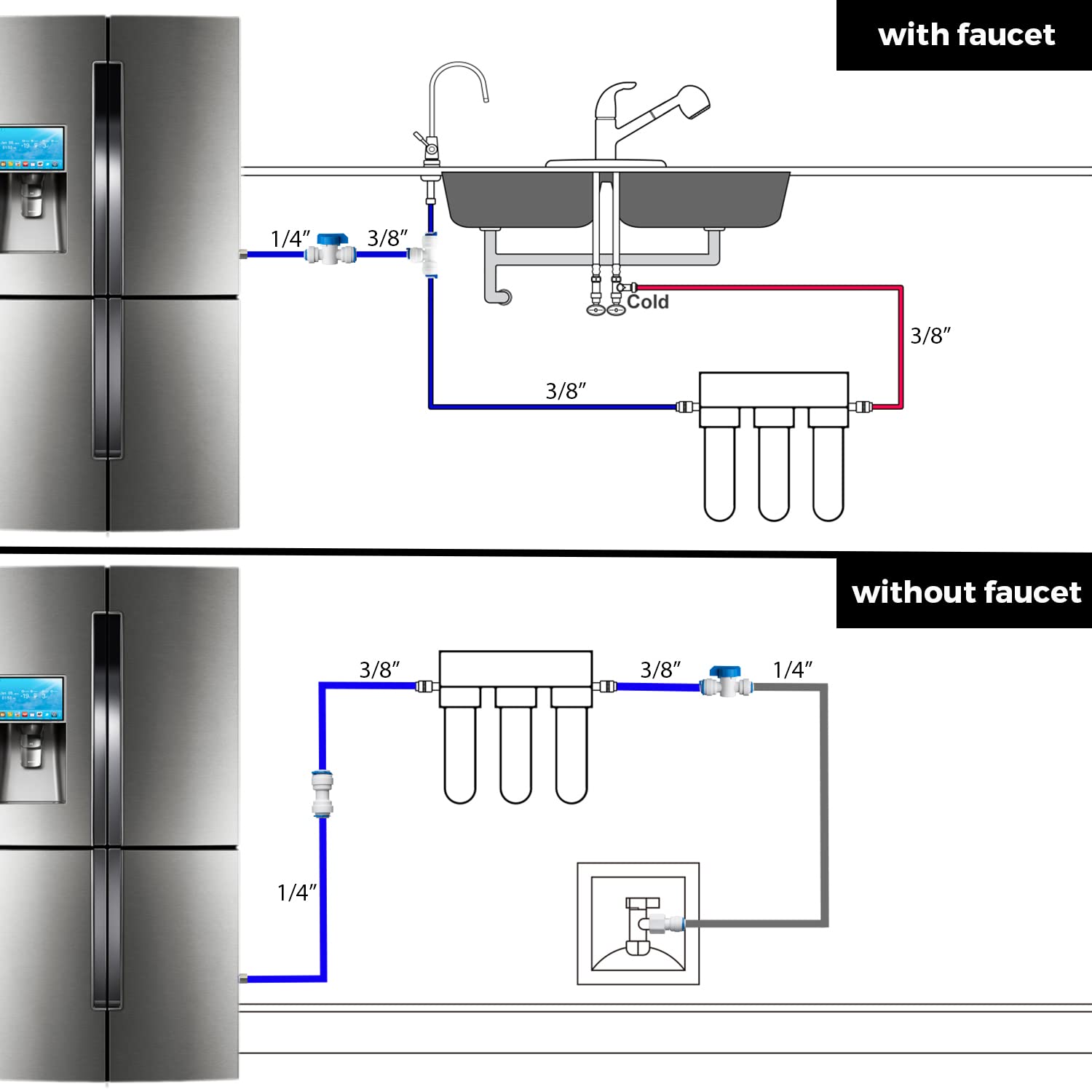 COMPATIBLE - The water line splitter fits many water filtration systems that use 3/8" tubing, like iSpring PH100, RO100, US15L, US15D, US15SL, US15SD, etc. Note: This ICEK3 fridge water line is for 3/8" ONLY. If you need a 1/4" water line splitter, please search “ICEK”.