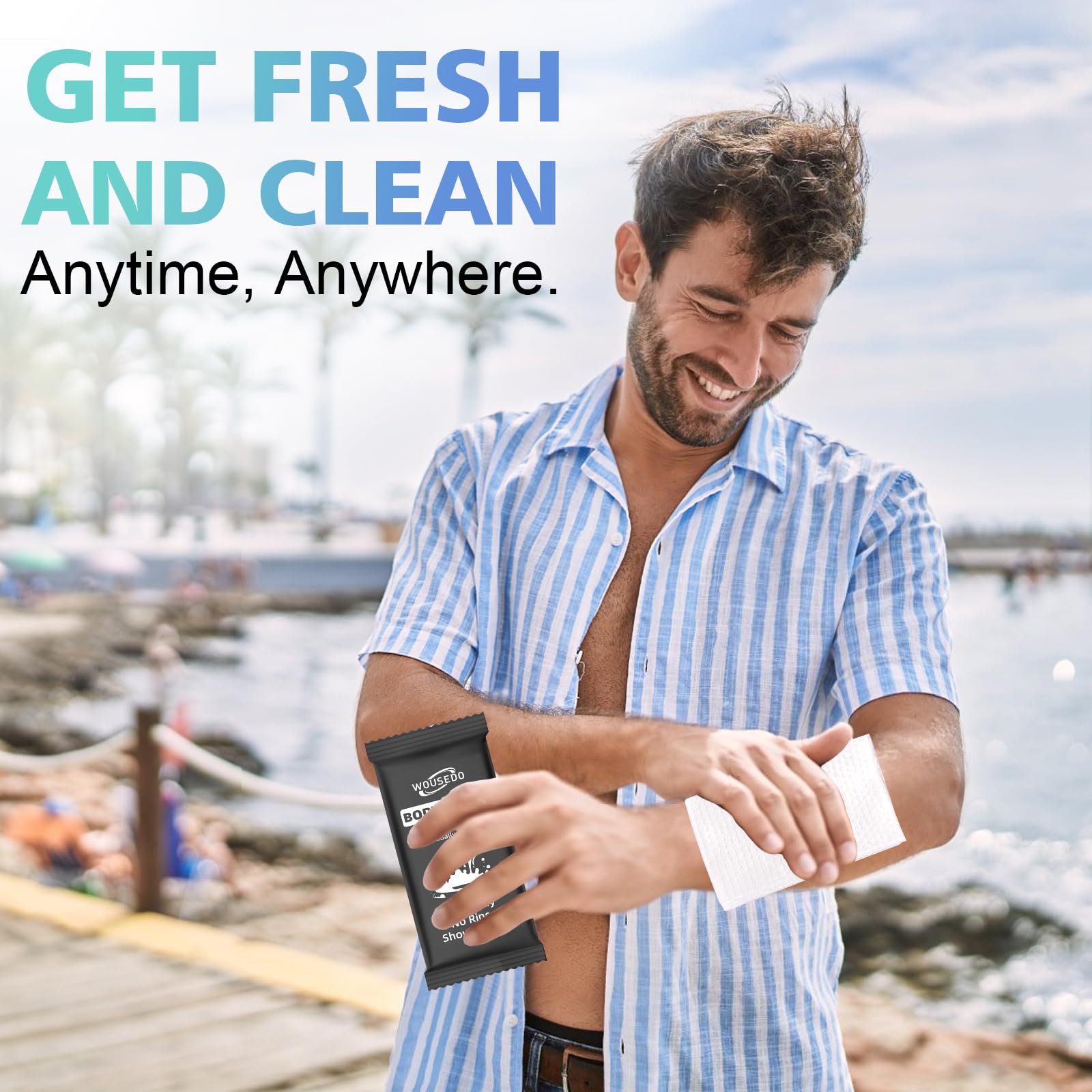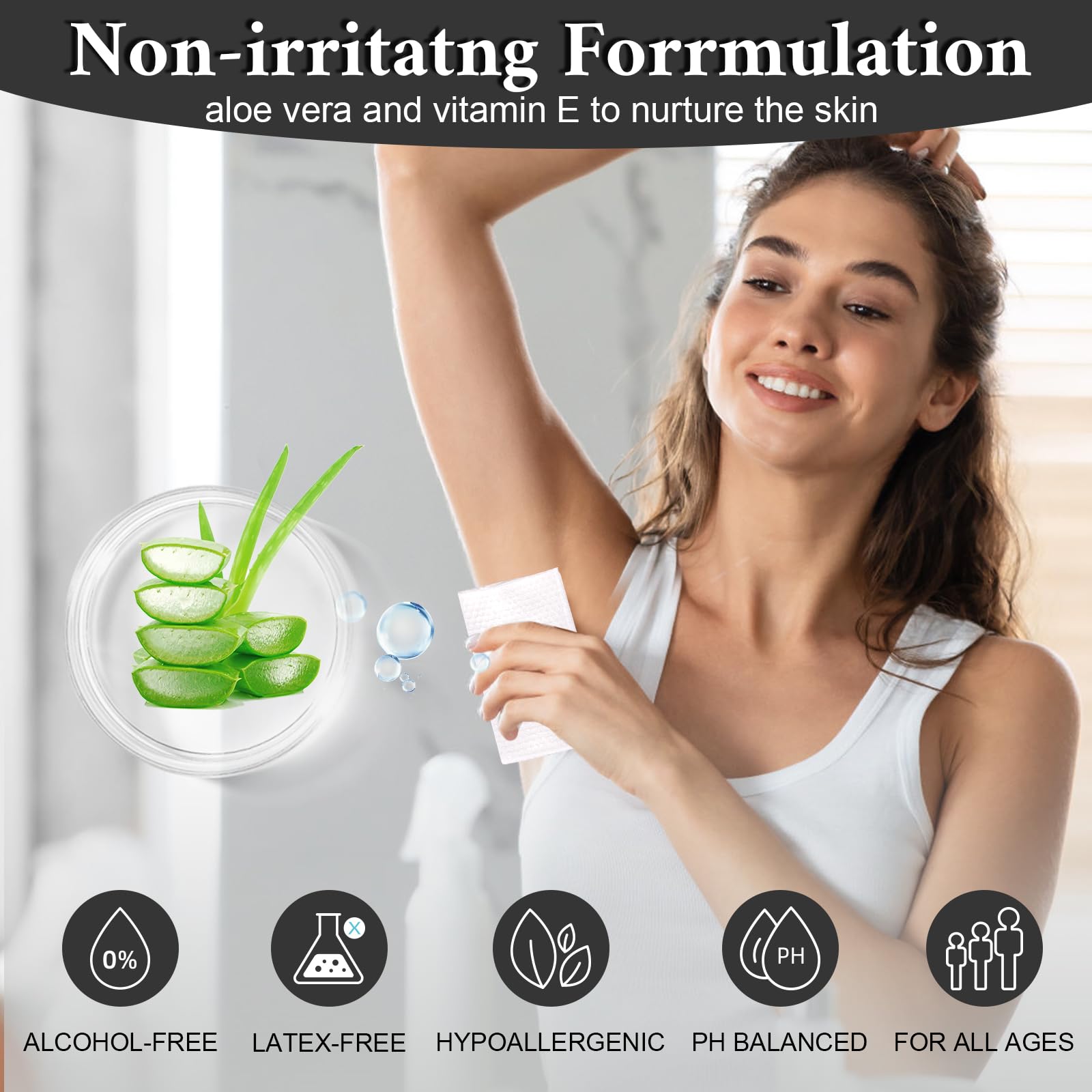 Mild Formula: WOUSEDO body wipes are made of high-quality non-woven fabric and RO pure water,PH balanced and rich in aloe vera leaf juice and vitamin E, they do not contain alcohol or any chemicals, making them more skin friendly, effectively cleansing the body, and not causing skin irritation.