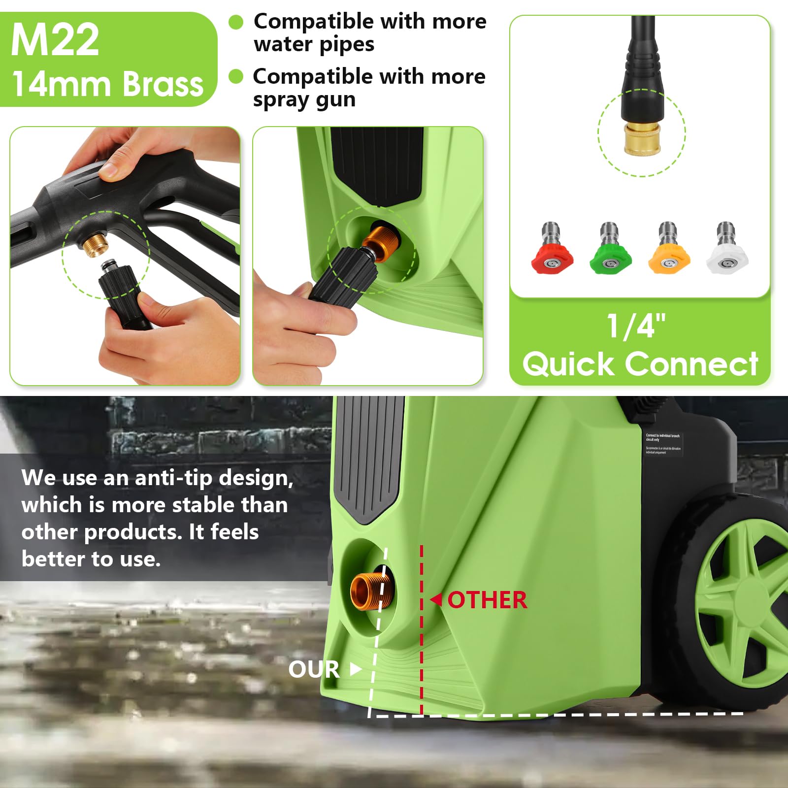 **[Customer Focus]** We offer reliable customer support, prioritizing your satisfaction. Enjoy a hassle-free shopping experience with professional assistance. Whether for residential or professional cleaning tasks, this pressure washer provides consistent and dependable performance every time.