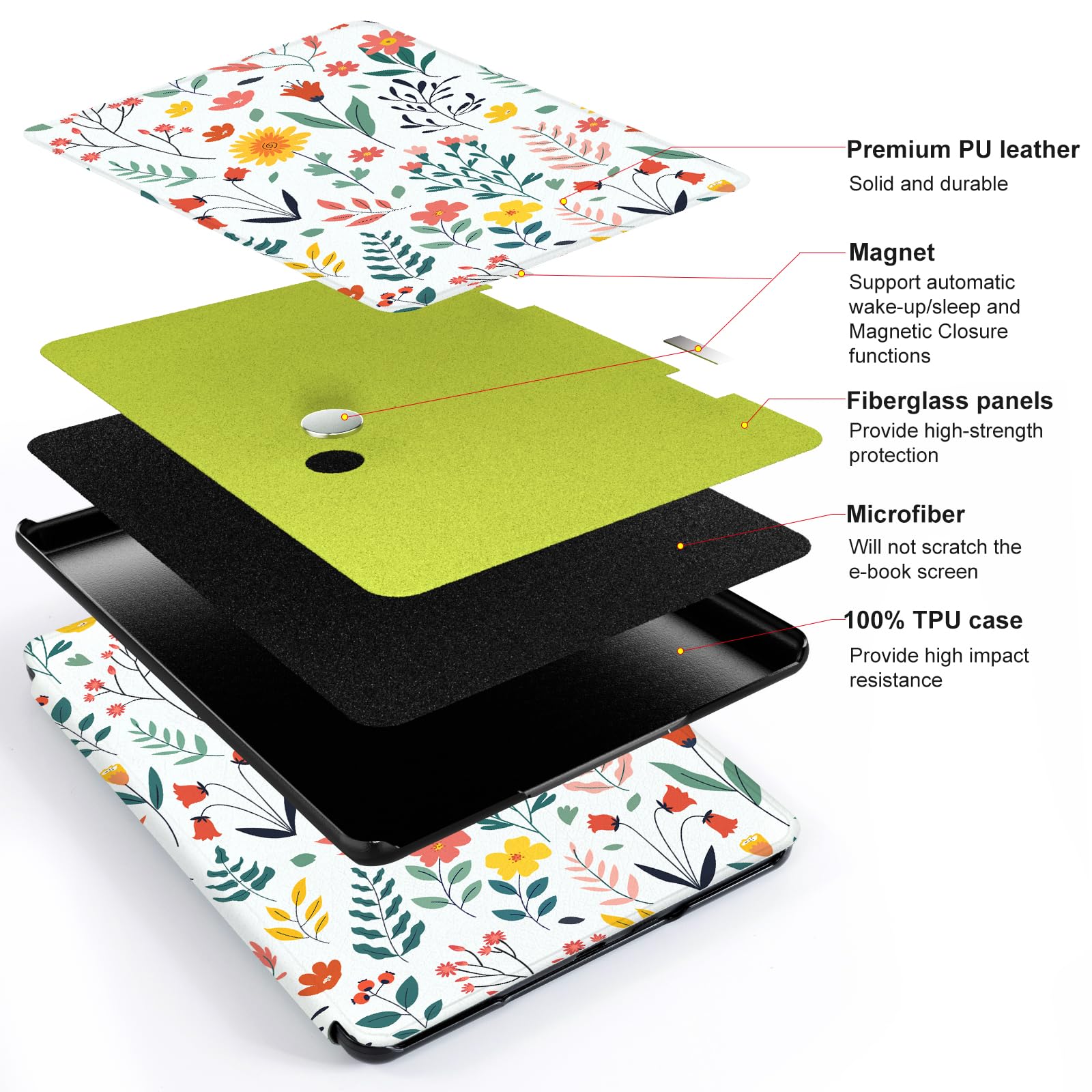 AUTO WAKE/SLEEP: With the built-in smart cover,your e-reader will be woke up or put to sleep seamlessly. All you need to do is to enjoy reading.Magnetic Closure: The magnetic design helps the kindle cover close securely, providing a 360 degree protection for your device