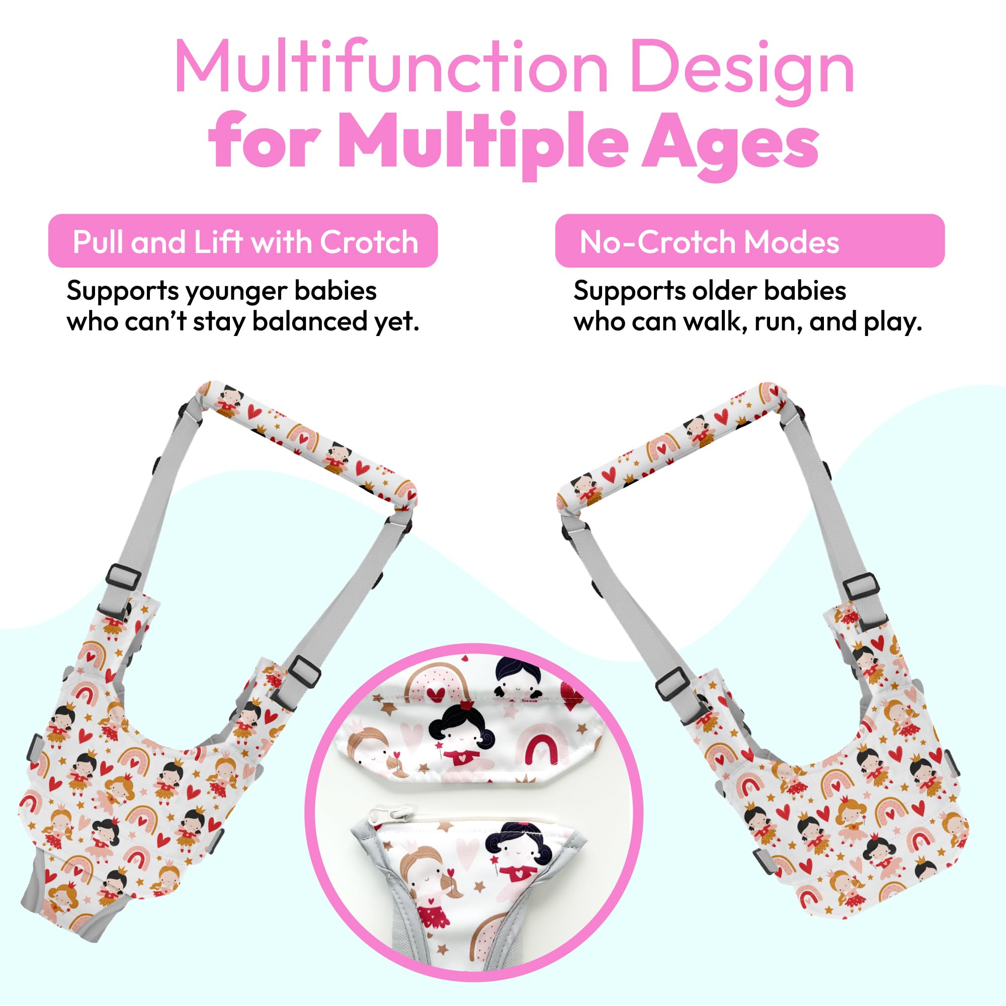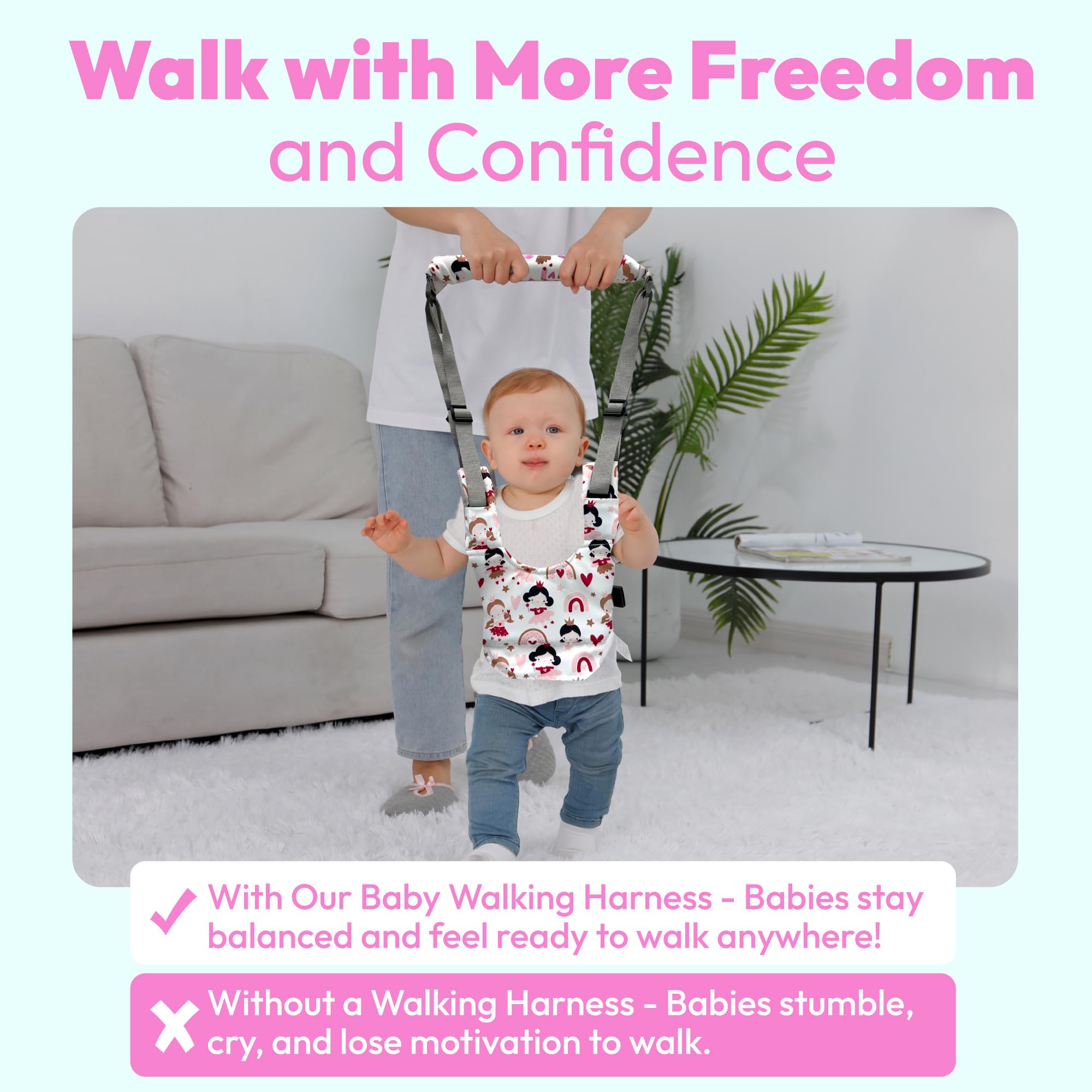 Help Boosts Confidence: This walking assistant belt will help your baby gain confidence as he will think he is actually walking on his own. You can let the baby walk at her own pace and help her get over her fears of falling down. This confidence will quickly developed into walking independently. Get your baby start walking within a couple of days!