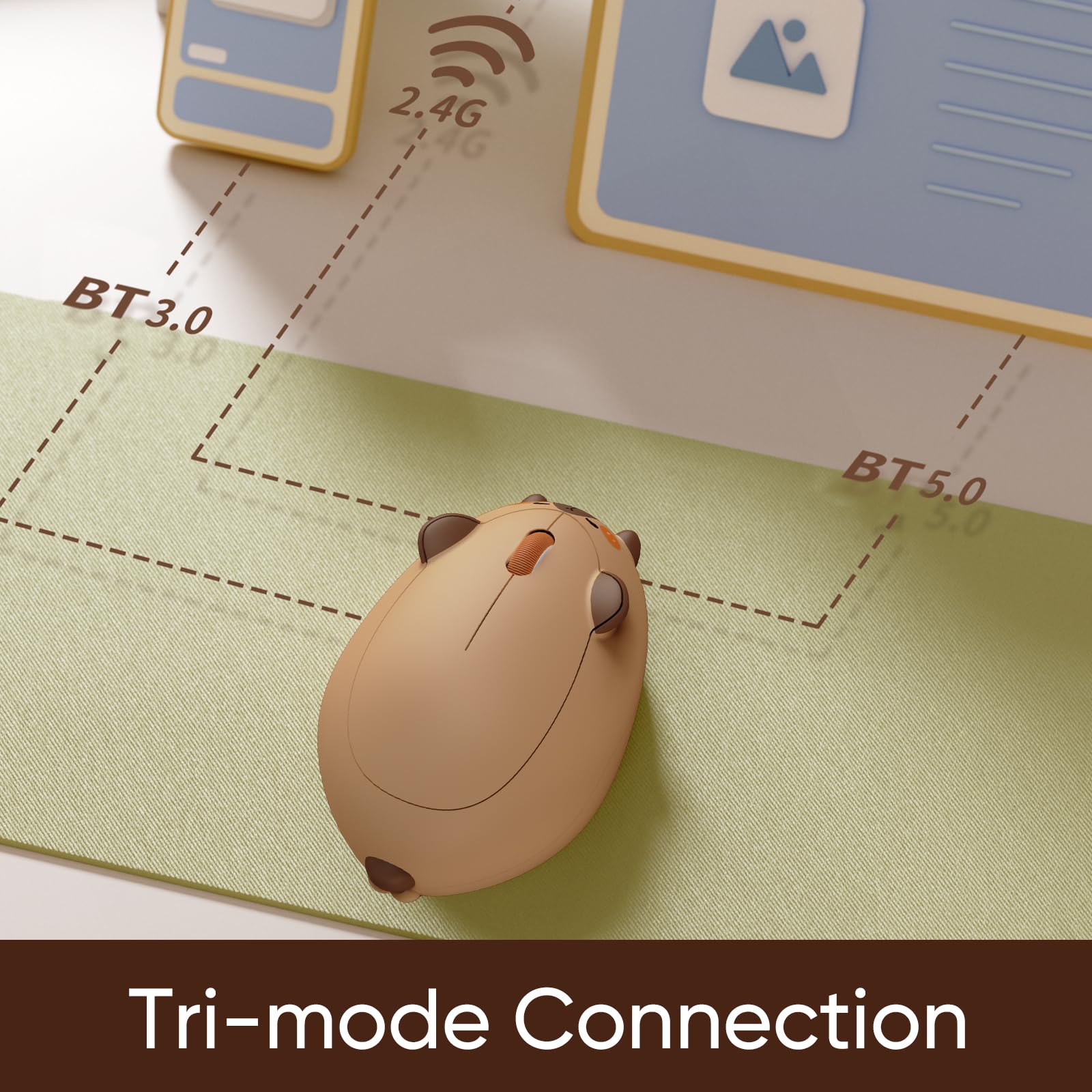 Cable-free Connection: The cute wireless mouse supports tri-mode connectivity, featuring 2.4GHz wireless and BT3.0/5.0 function, enabling cable-free connection to multiple devices for a simple, orderly setup