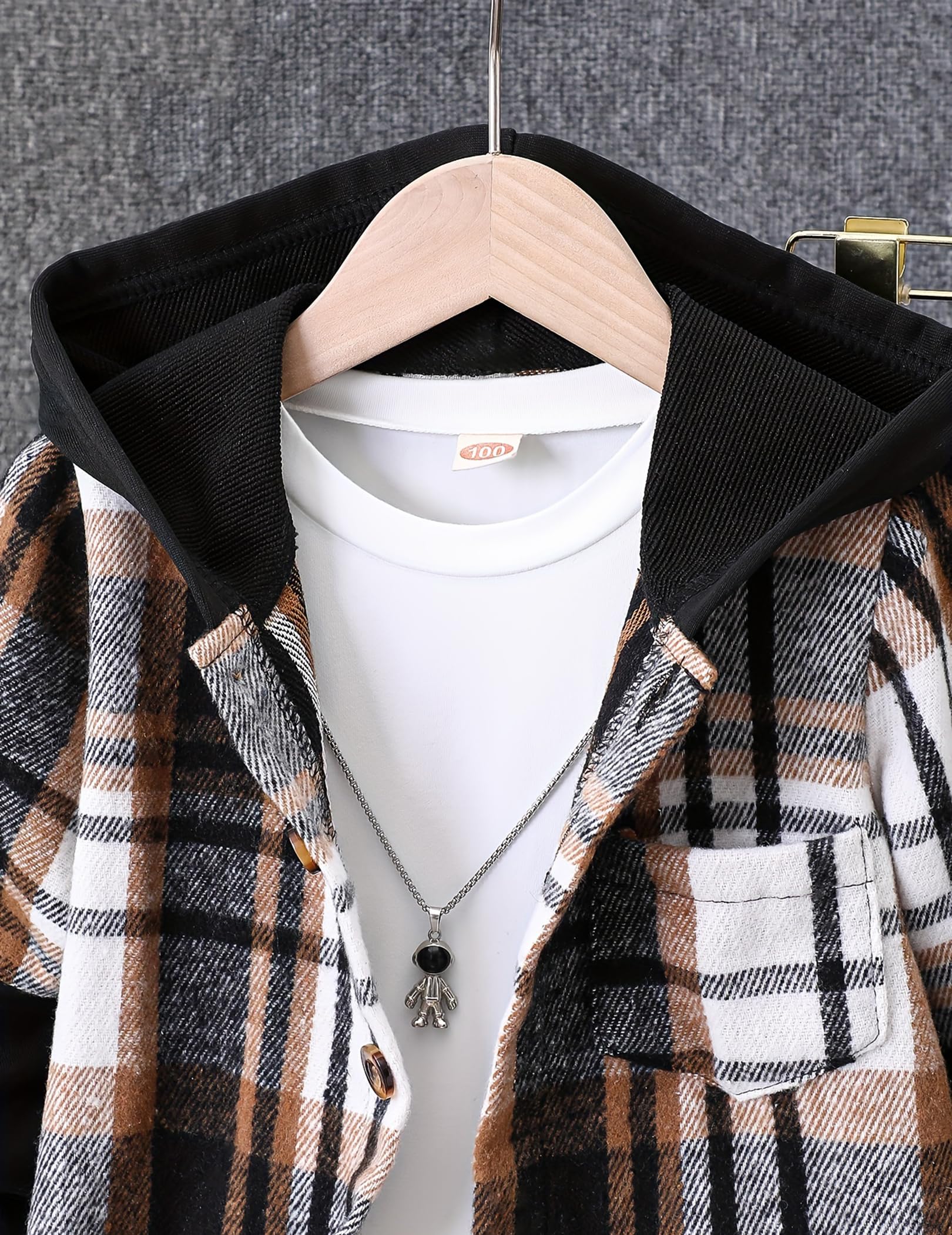 Size Options: Kid boy plaid hoodie outfit suitable for 4-12-year-old boys, 4t flannel shirt boys. plaid shirt cowboy boys 5- 6 years old. boy clothes 7-8Years. boy outfit 9-10Years.boys plaid fleece shacket 11-12Years.Please check the size chart carefully before buying