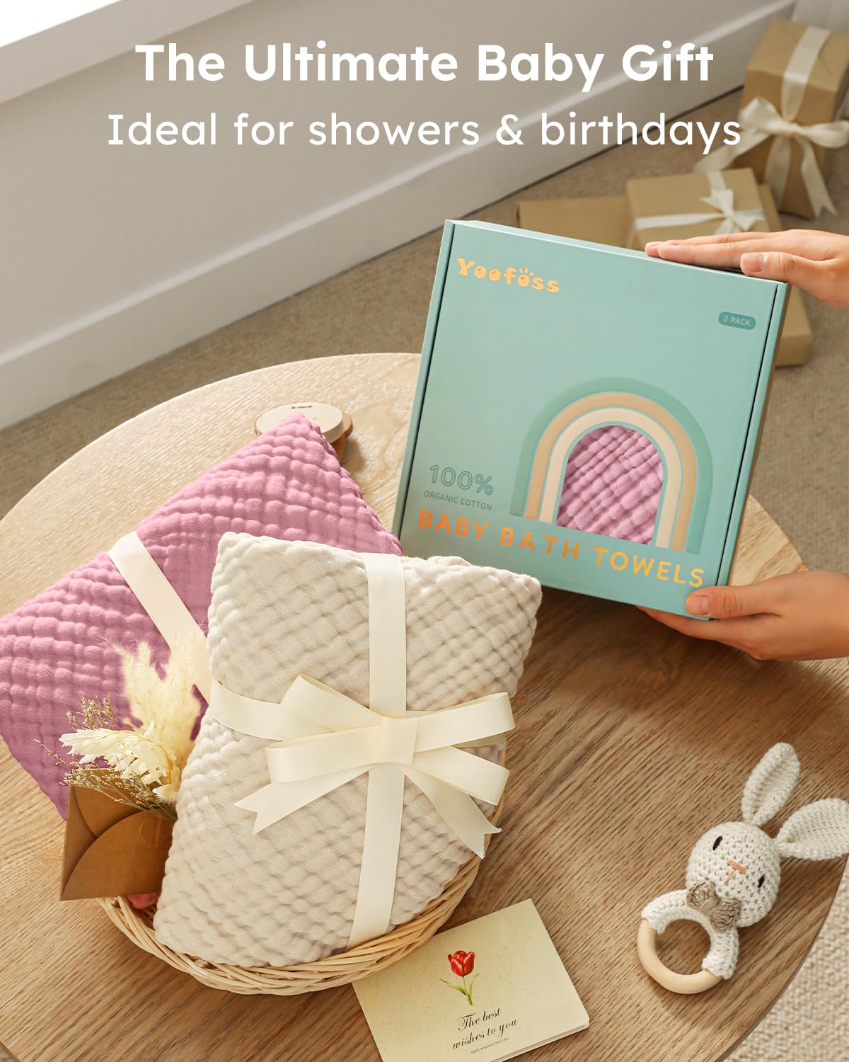 [Easy Care] - Our muslin baby towels with hood will keep its softness, thickness and color even after many washes, machine washable and quick dry. The set of 2 baby towels for newborn is more convenient for daily change and easy clean up.