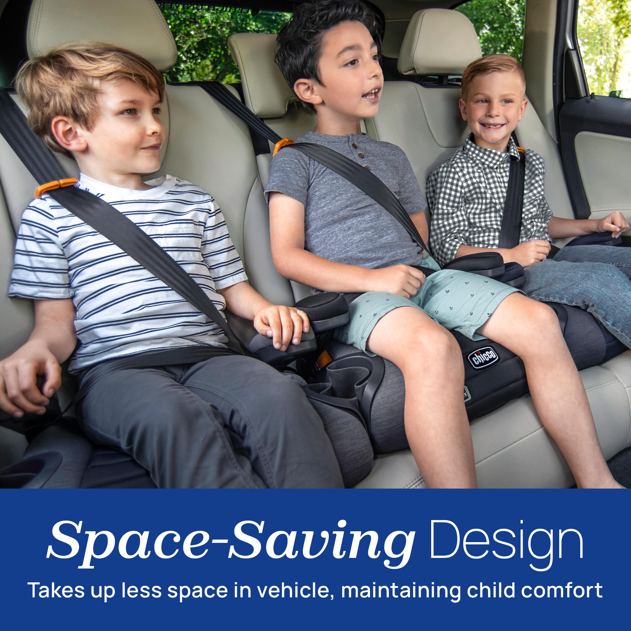 The GoFit ClearTex Backless Booster seat is designed for children who are at least 4 years old, between 40-110 lbs. and 44-57” tall, and can sit relatively still in the same seated position throughout the car ride. For big kid comfort, the contoured ErgoBoost seat and double foam padding provide support in all the right places. ClearTex features flame retardant-free materials for gentle, child comfort and parent peace of mind. GREENGUARD GOLD Certified, GoFit ClearTex has been tested for low chemical emissions, contributing to healthier air quality around child. GoFit ClearTex is equipped with integrated lap belt guides and a shoulder belt clip to help position the vehicle seat belt for proper use. A built-in carry handle makes it easy to transfer this portable booster seat from vehicle to vehicle and a smooth underside helps protect vehicle seats from damage. Two soft-sided CupFolders easily flex and fold out of the way to save space. For parent convenience, the cup holders are easy to remove and dishwasher-safe. All fabrics are also removable and machine-washable, including the pop-out arm rest covers. Portable and convenient, the GoFit Backless Booster is an ideal travel booster seat.