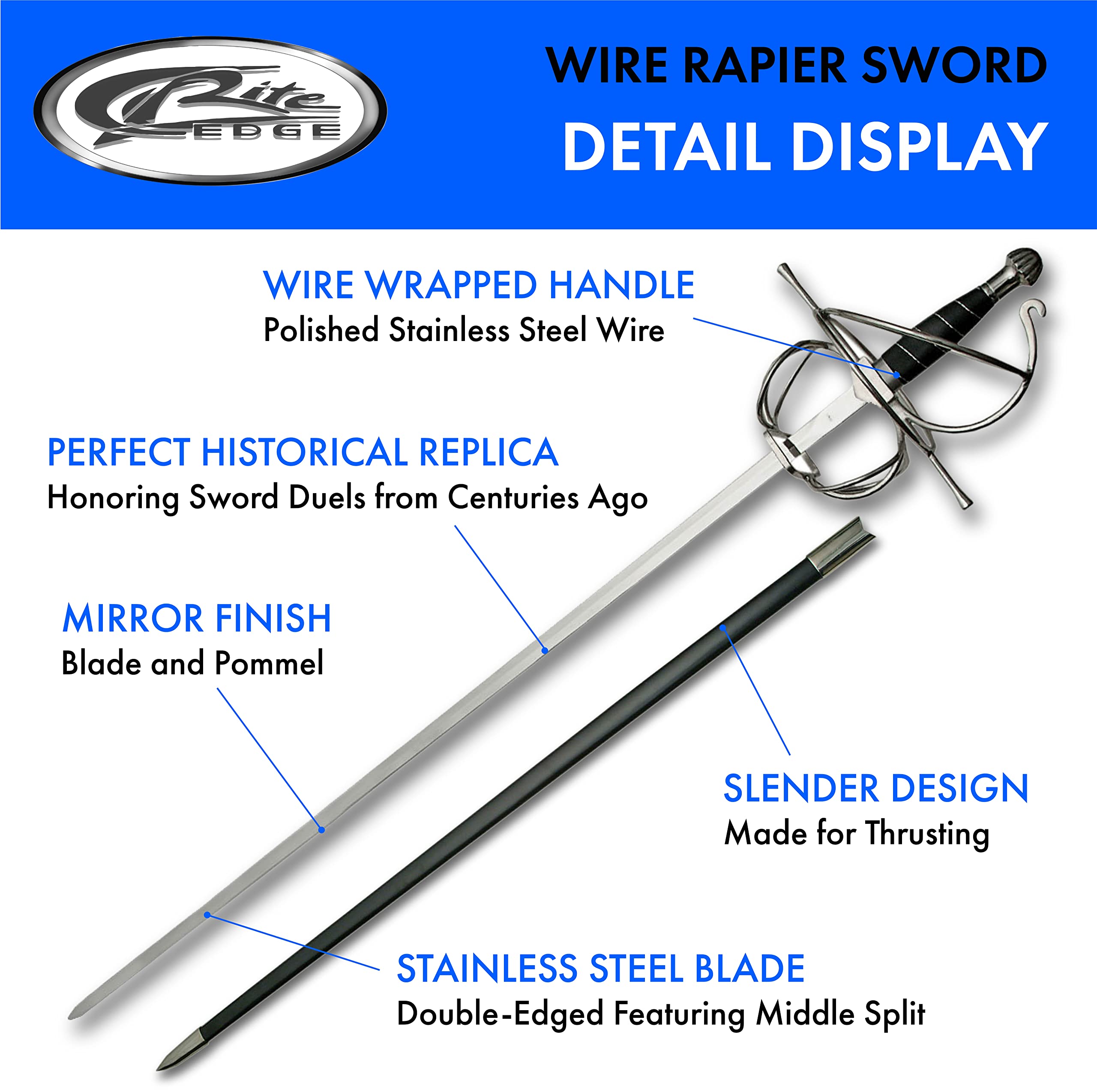 Authentic Design: This fancy sword features a black wire wrapped handle with a wirework guard and silver pommel. Designed to reflect real swords of historical elegance and craftsmanship. A must-have for sword enthusiasts of fancy swords.
