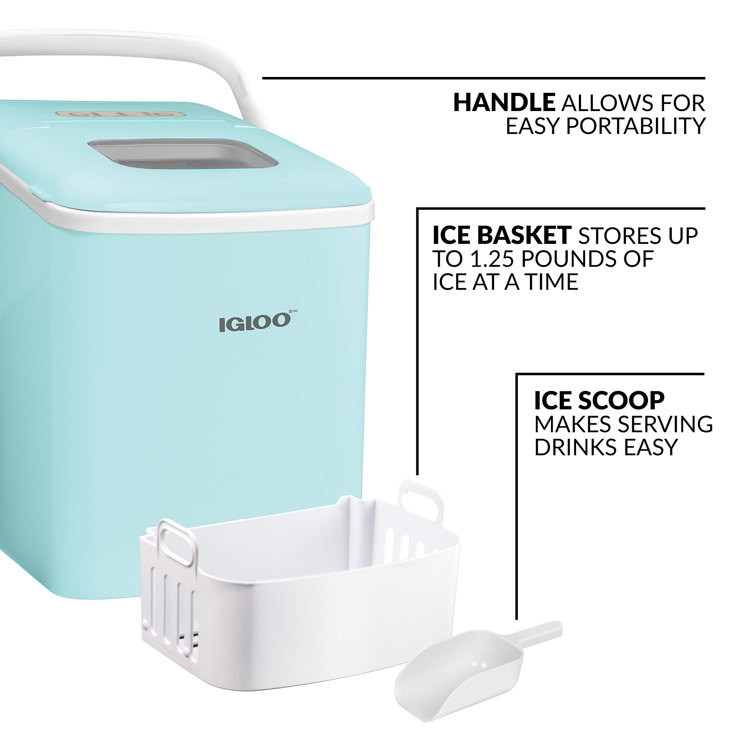 Say hello to this perfectly compact, stylish and portable appliance that will keep your beverages nice and chilled! With the ability to make ice in as little as 7 minutes, this unit has the capability to produce 26 pounds of ice per day. Comes with an easy carry-handle, allowing you to bring the ice maker from room to room. A viewing window allows you watch the ice being made, while the 1. 25-pound ice basket ensures plenty of capacity for all of your beverage needs. The automatic five-cycle self-cleaning function makes clean up easy and allows clean ice to be made every time. The LED-lighted control panel lets you to choose from small or large ice cube sizes, while also letting you know when to add water and if the ice basket is full. Perfect for pool parties, home bars, dorm rooms, offices and more! Cold Drinks. Warm Smiles.