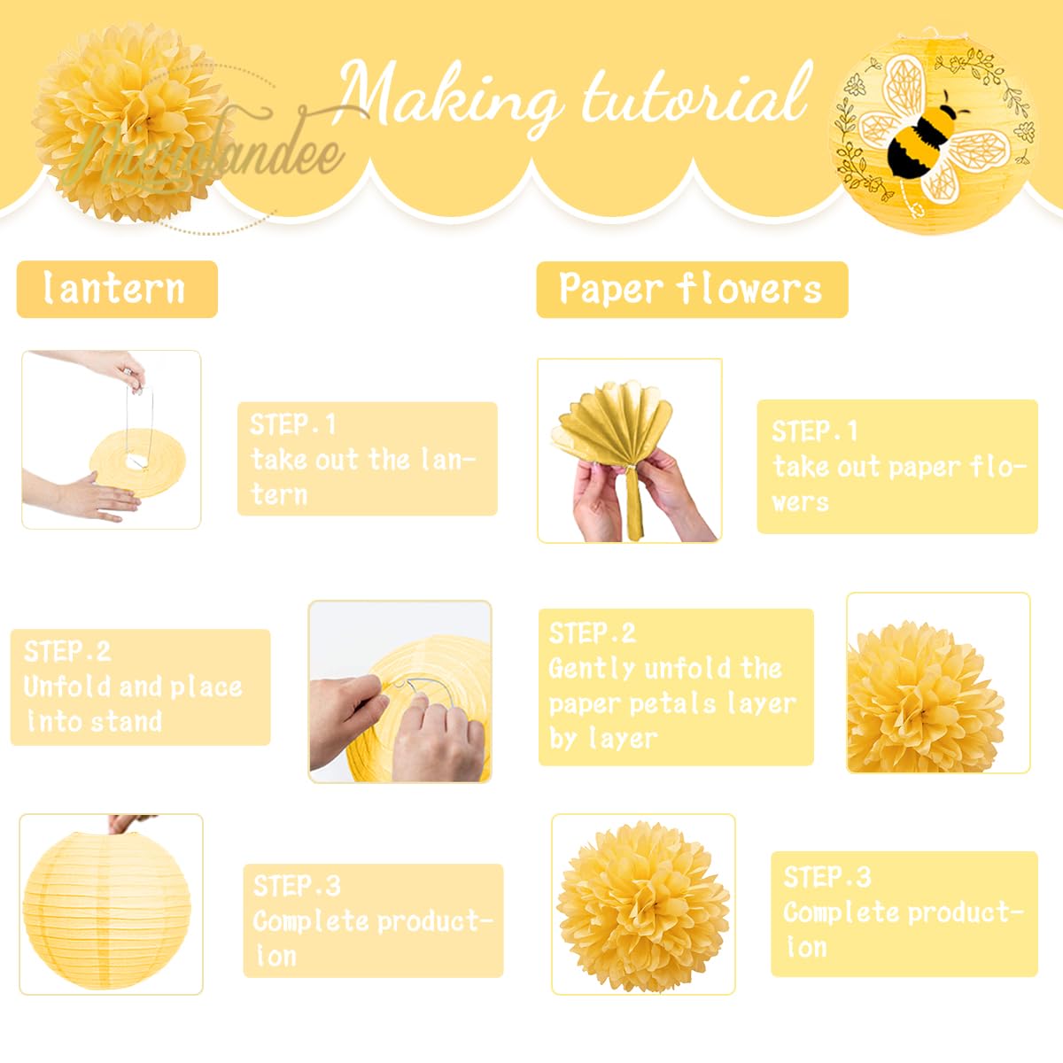 Premium Material: Pom-poms, lanterns are made of premium tissue paper. Unique design with bees and flowers, these classic elements are more in line with your theme party, making your party more interesting and memorable